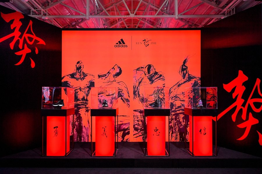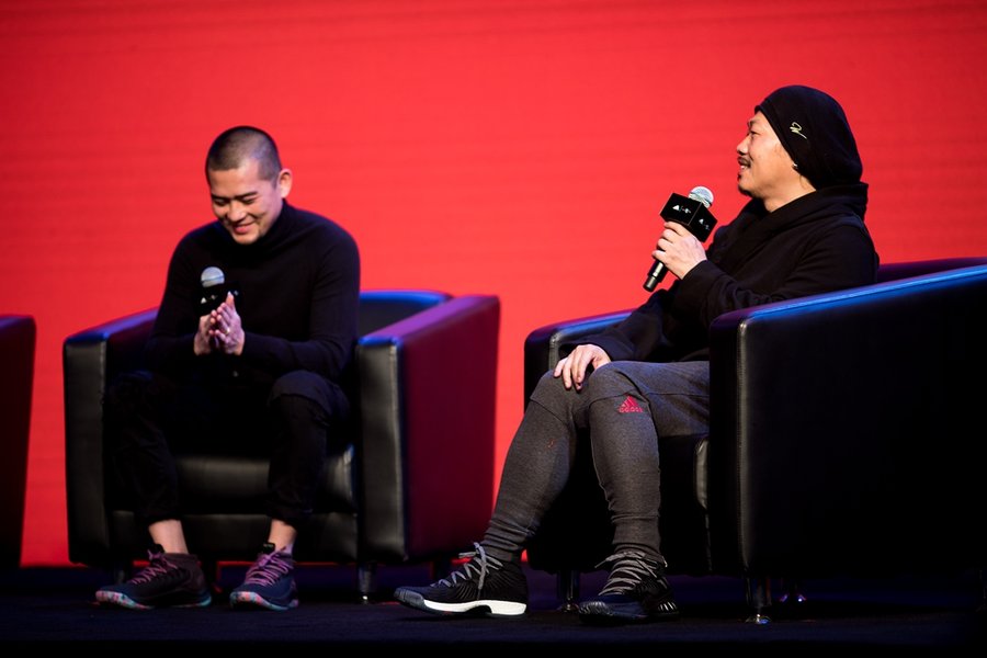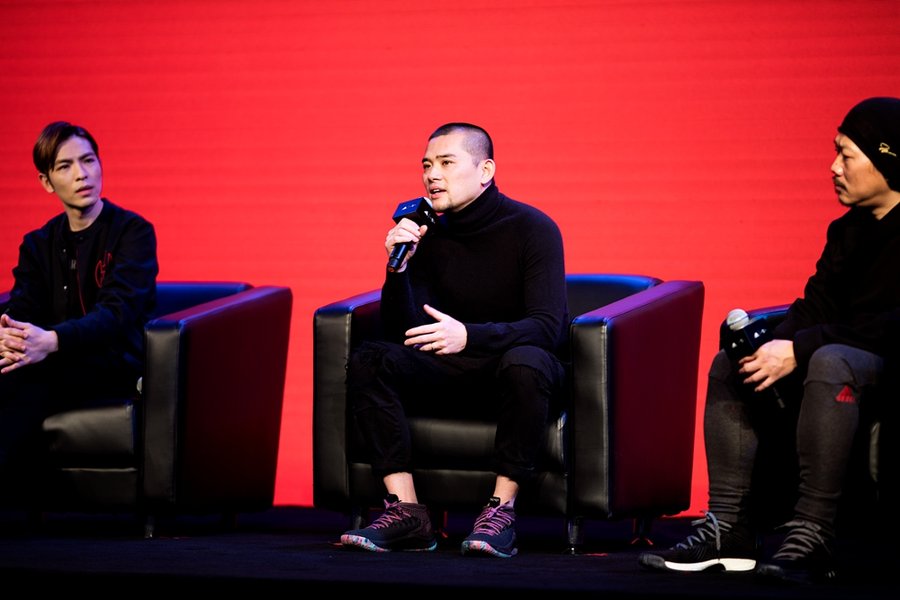 1 月 16 日上海 800 秀现场,adidas basketball 邀请艺术家任哲也是本次 CNY 设计师,降临 adidas 篮球 CNY “獒视群雄” 新品发布会现场,畅谈本次系列的设计理念,更有金曲歌王萧敬腾、东方词圣方文山、嘻哈歌手小青龙前来助阵,为本次 CNY 呈现出全方位的感官震撼。