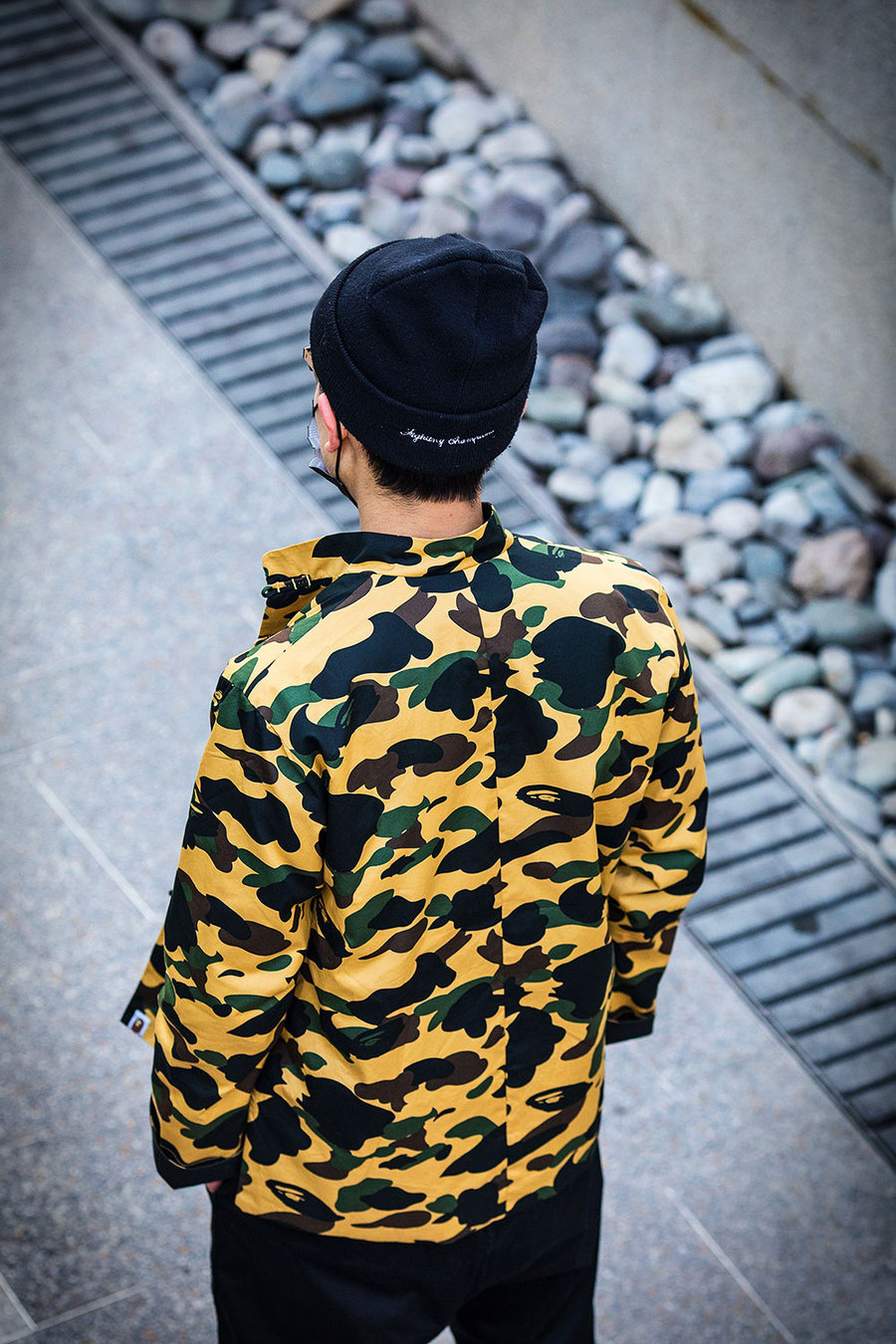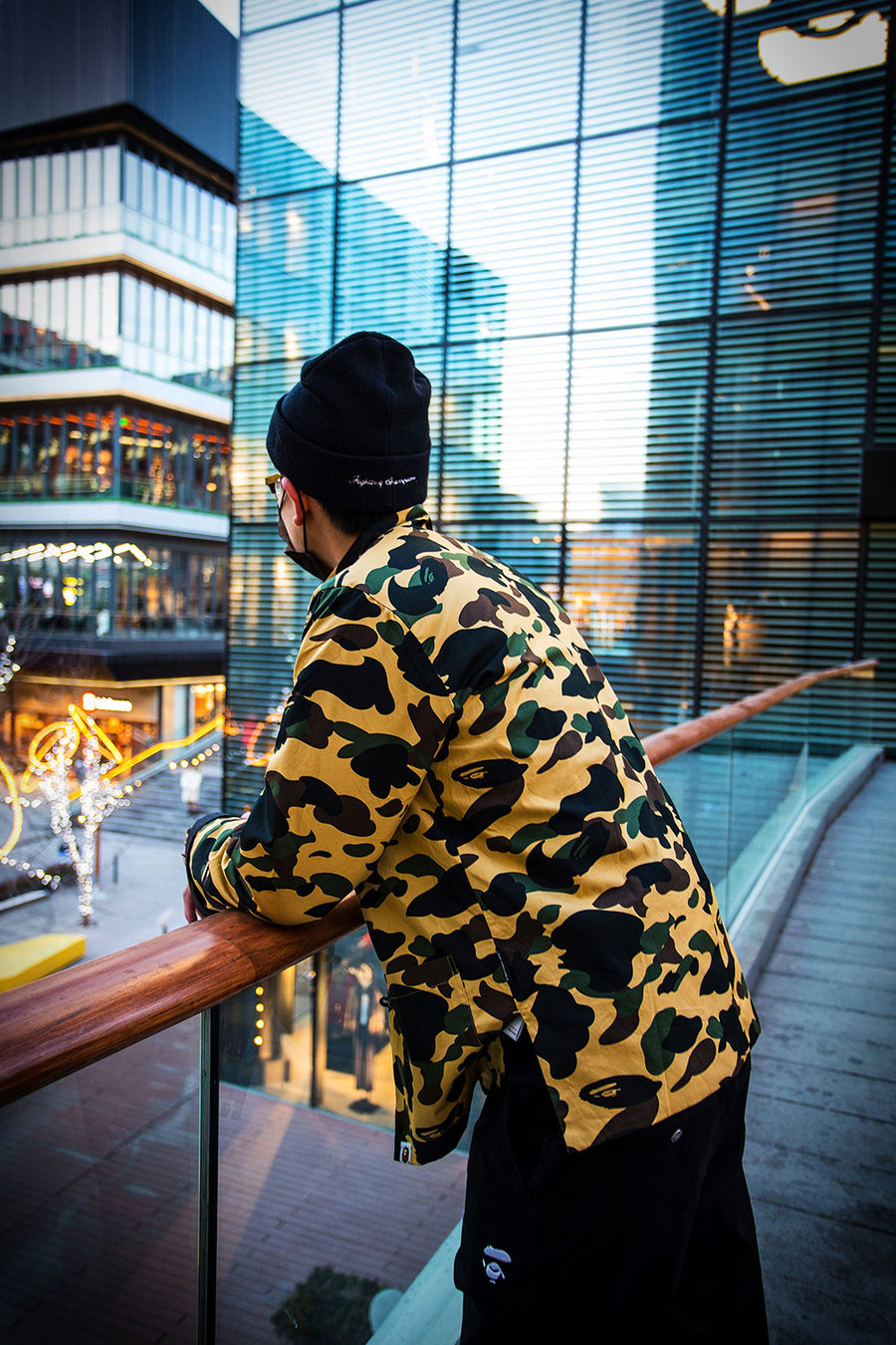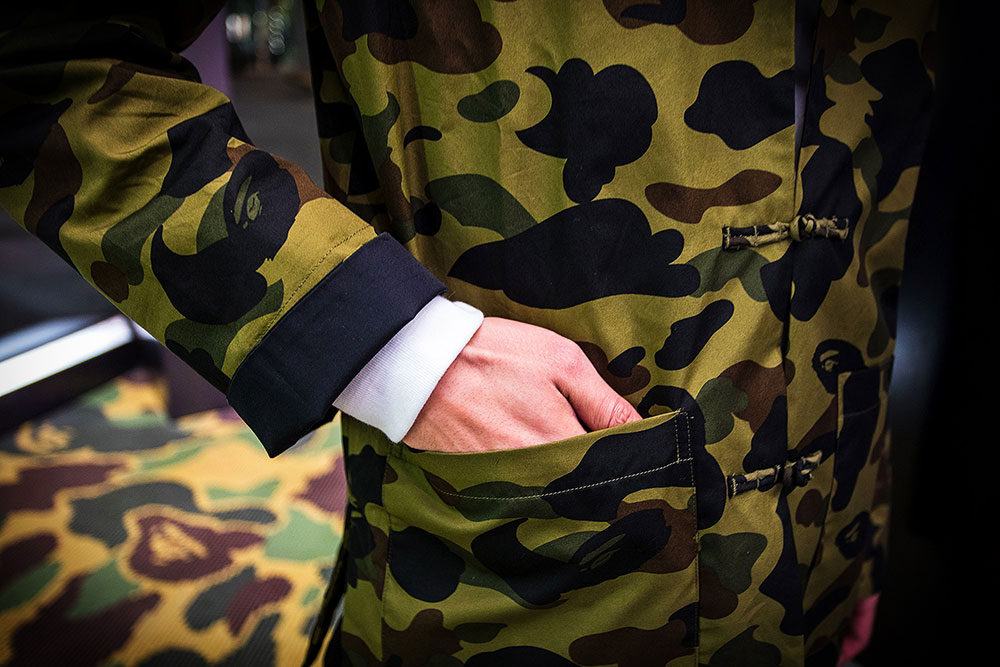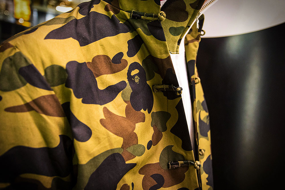 BAPE® 在今年再度带回迷彩唐装款式,采用了 1ST CAMO 最经典的迷彩图案,也是曾经菲董 Pharell Williams 上身的同款。
