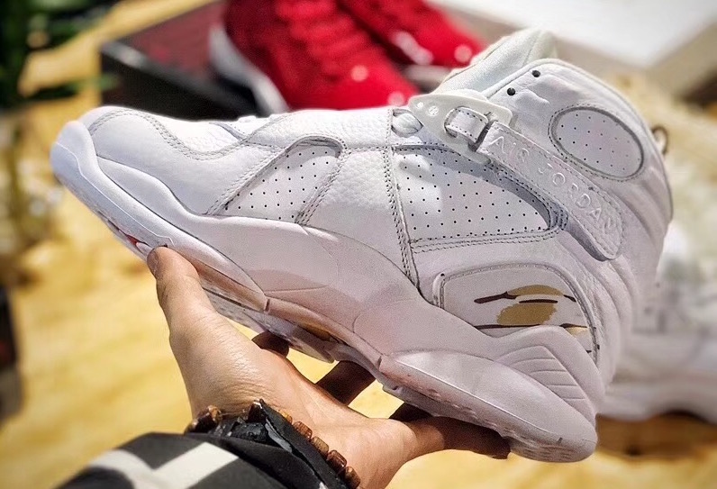 许久不见 OVO x Jordan Brand 的踪影了,迈入 2018,双方的合作则很快会带来新品! 眼前的白金配色 Air Jordan 8 OVO 将于 2 月 16 日正式发售,或将作为今年全明星周末的一个环节。 采用了质感十足的荔枝皮革打造鞋舌,细节的金黄色装饰则注入华丽气质,后跟和鞋盒上的猫头鹰 LOGO 则表明了它 OVO 的联名身份。 货号:AA1239-135