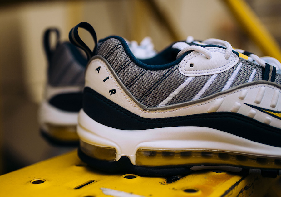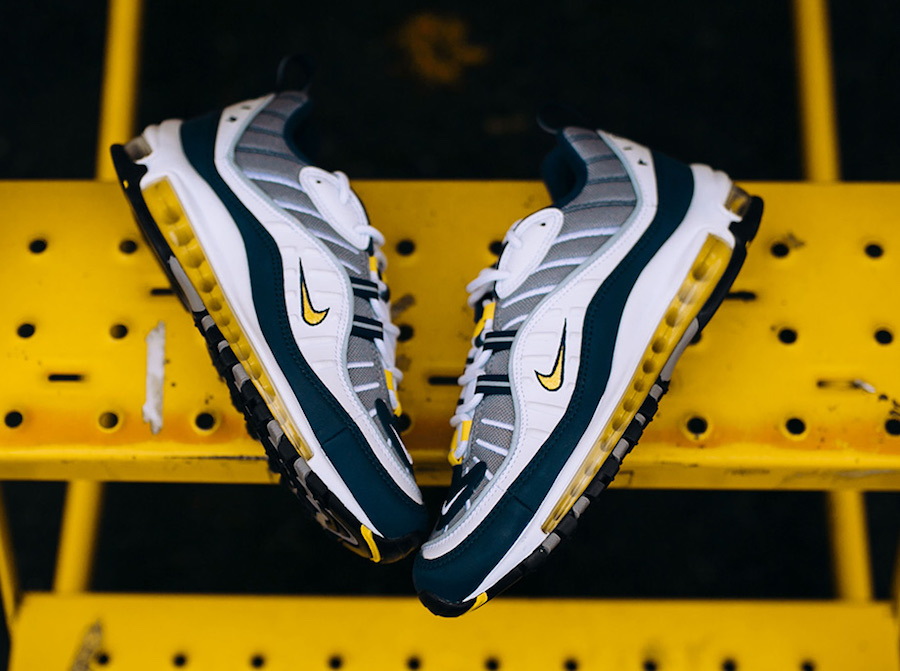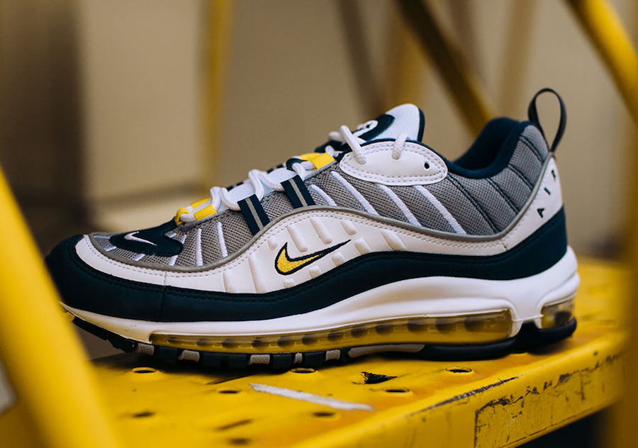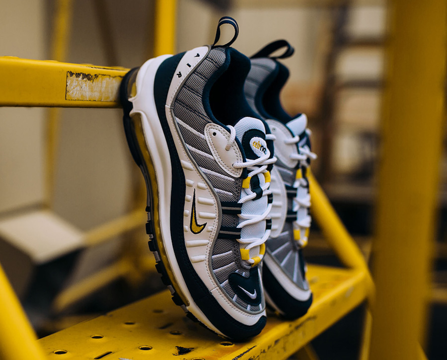在 2018 年的第一个月,今年二十周年的 Air Max 98 就迎来了多个配色的发售,虽然目前中国区还没有正式售卖的消息,但海外区在月底又有新品亮相。 眼前这款 Nike Air Max 98 “Tour Yellow” 以白色和蓝色作为背景基调,细节的亮黄色装饰则格外夺目。 将于 1 月 26 日正式在海外发售,发售价为 $160 美元。 货号:640744-105