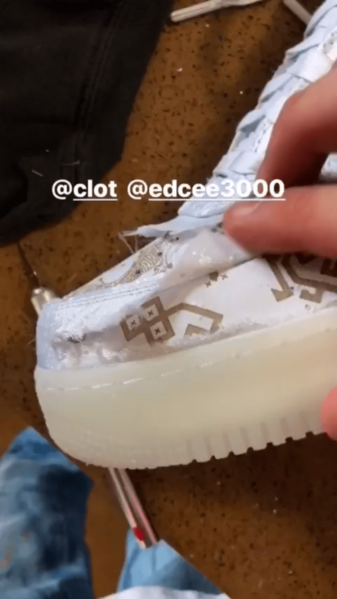 而同之前的 CLOT x AF1 一样,这双 “白丝绸” 的鞋面之下依然暗藏玄机!撕开之后则露出金色线条勾勒的图纹,龙凤元素加入其中,同样中国韵味十足。