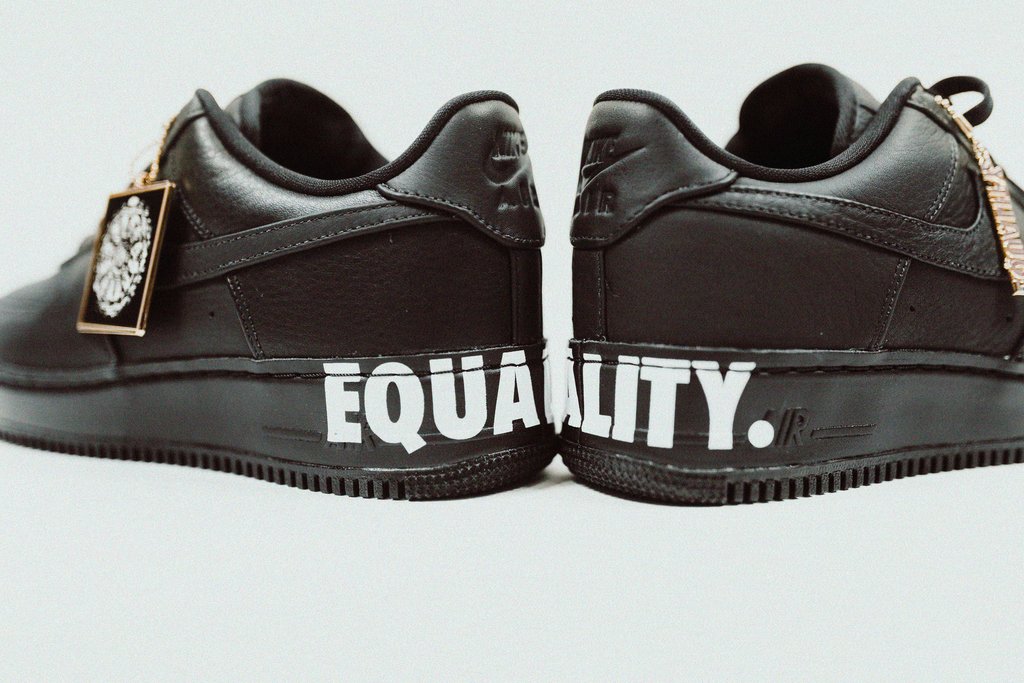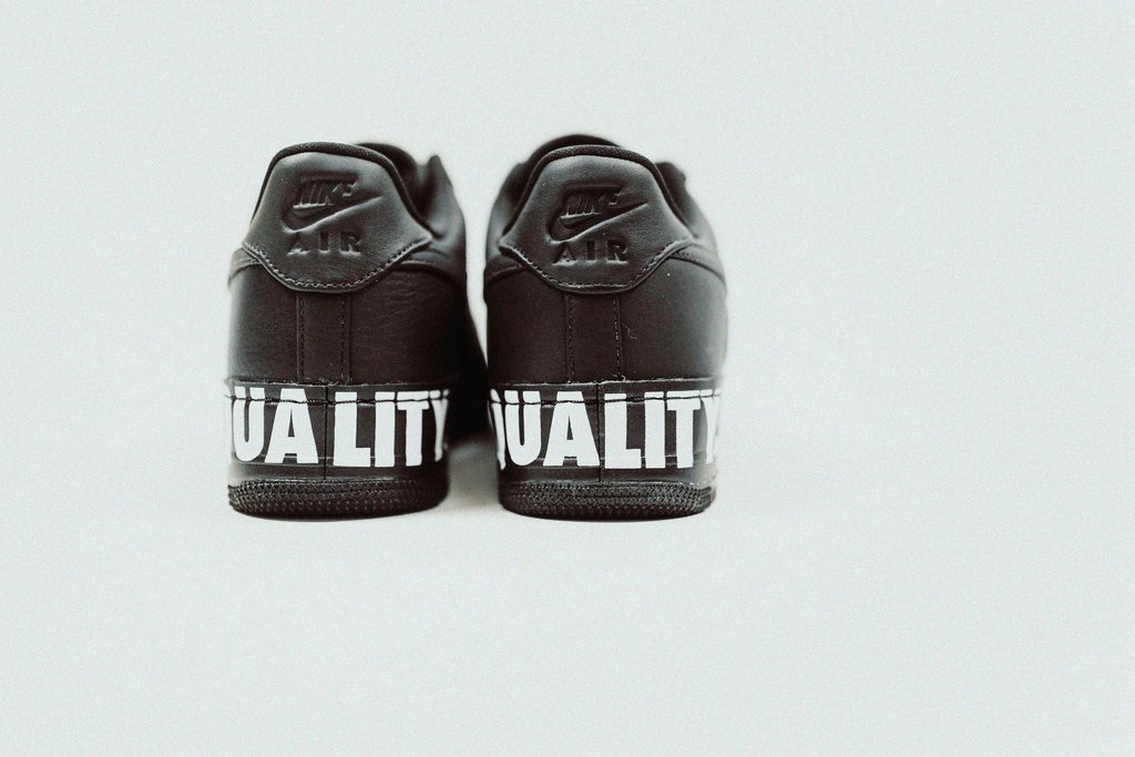 以 EQUALITY 公平口号为主题,今年的 Nike BHM 系列鞋款以黑白色作为主色调,而后跟鞋底的大字呈现,颇具视觉冲击力。 眼前这款 Nike Air Force 1 CMFT QS “EQUALITY” 不仅采用了黑白的简约色调,配套周边也格外的精致,金属质感的吊牌在表达主题含义的同时,也有华丽质感。 沉稳又颇具质感的黑色皮革鞋身,后跟的白色字样起到了画龙点睛之效果,低调又个性不俗。 目前国内还没有具体的售卖消息,我们将持续关注。 货号:AQ2125-001
