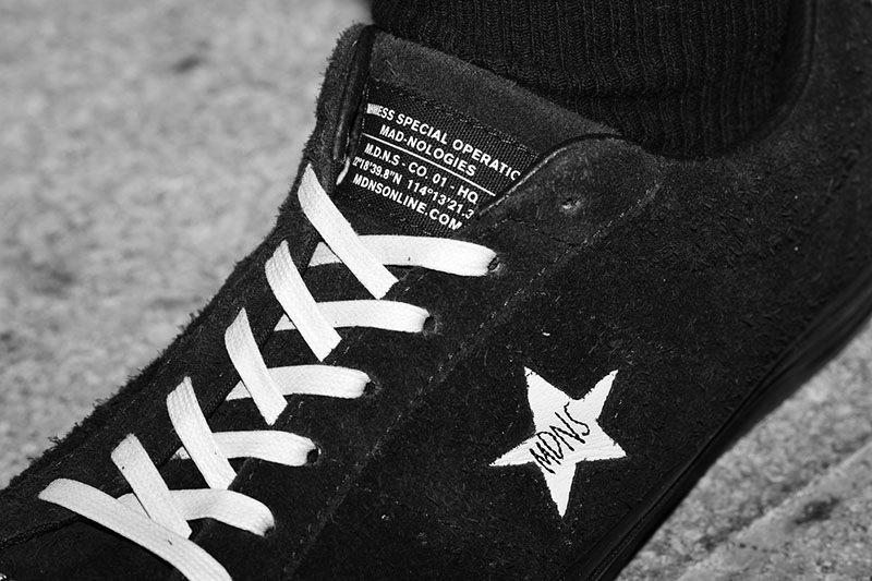 最引人瞩目的地方无疑是鞋身侧面五角星内嵌 MDNS 字样,在鞋头部位刺绣 MADNESS 文字,极具辨识度。