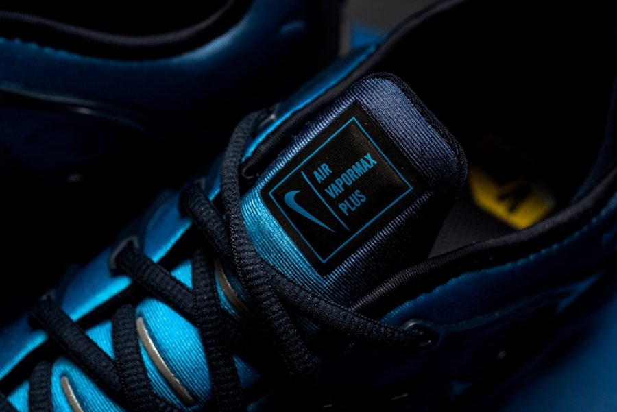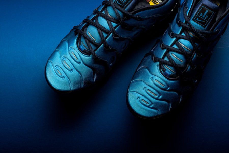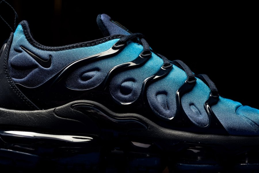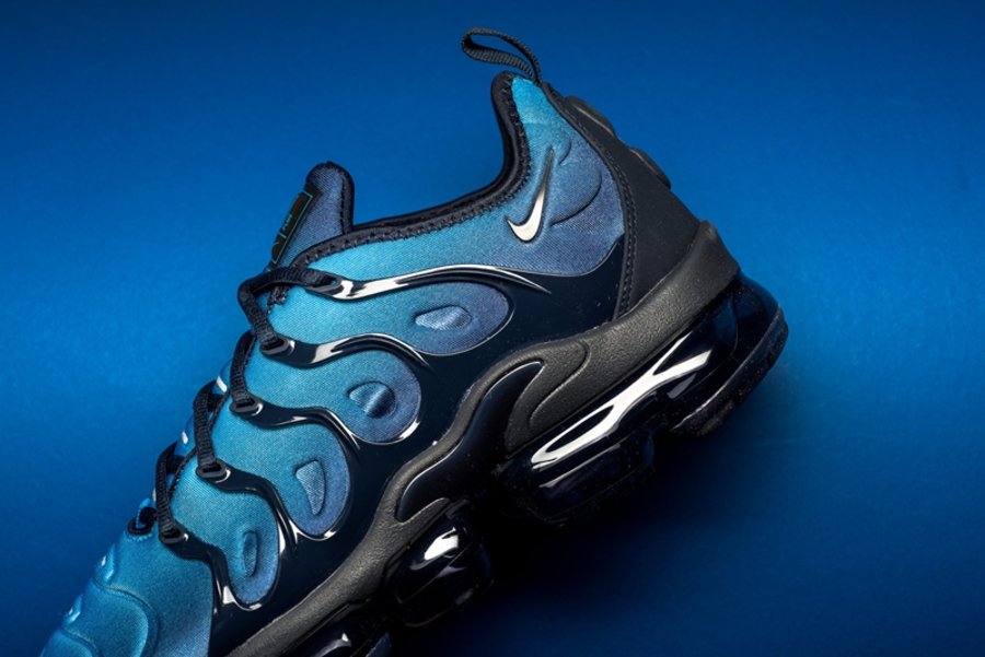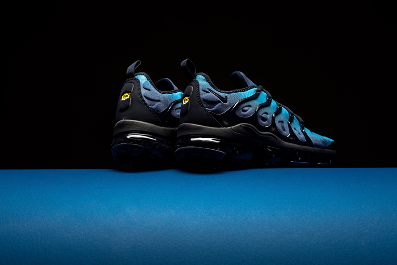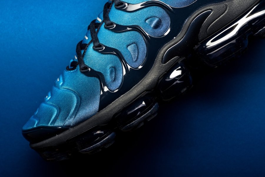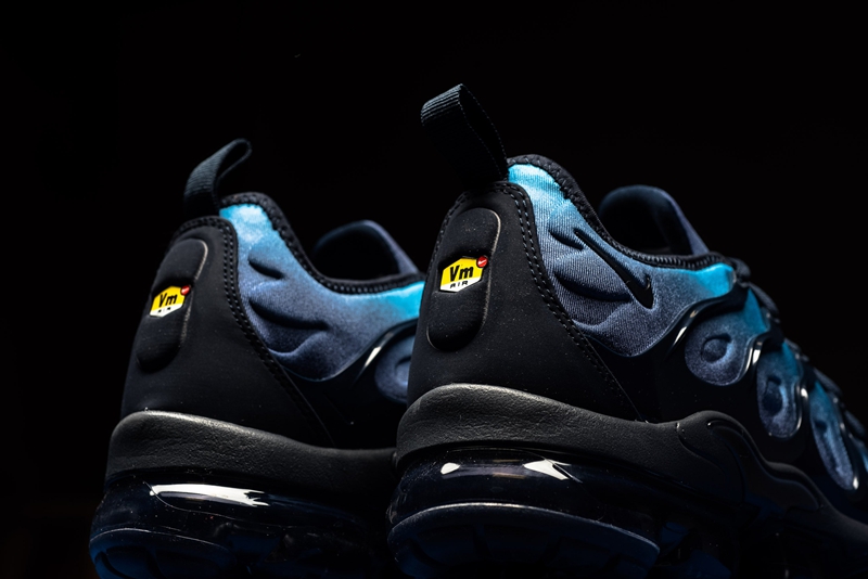这双全新鞋型的设计将经典鞋款 Air Max Plus 的鞋身轮廓与 VaporMax 气垫大底相结合,由浅蓝向深蓝过渡的鞋面搭配黑色鞋身支撑与气垫,呈现出不俗的科技感。