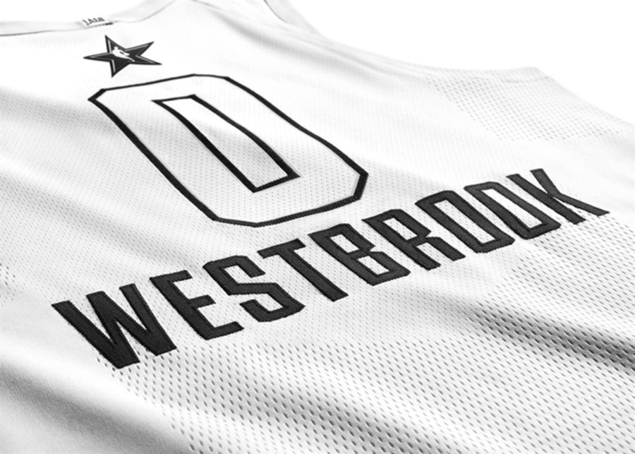 今年的 NBA 全明星球衣,Jordan Brand 并没有带来往年醒目的配色设计,而是以更加简约的黑白色调为基础,将每位球员各自球队的队标以洛杉矶路牌字体的形式设计呈现,新颖的设计风格和先进的球衣科技都能让你感觉到耳目一新!