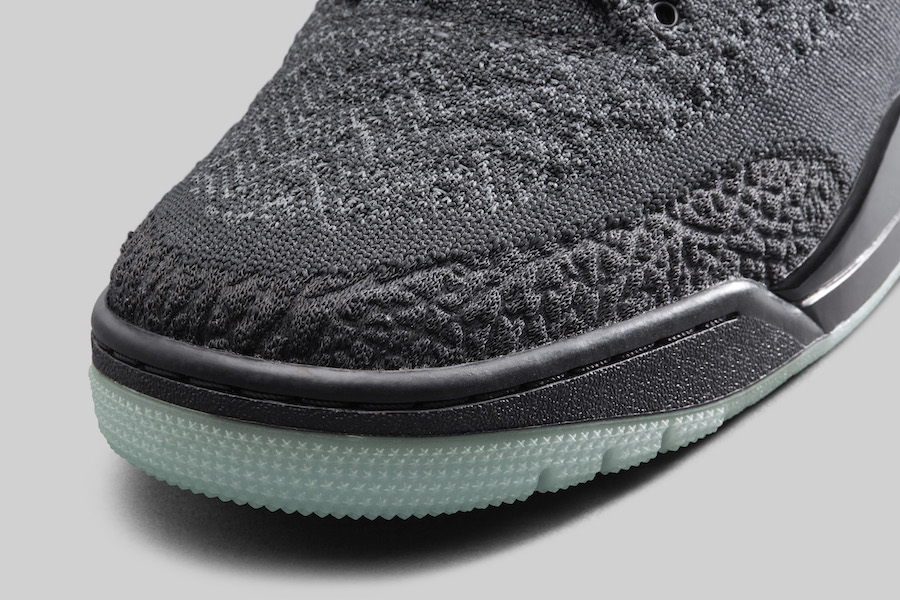 鞋面部分包括爆裂纹在内全部使用 Flyknit 编织材质打造,让这双鞋更加轻便舒适,最大的好处就是不用再担心上脚以后会出现折痕!简直是为 Air Jordan 3 的铁粉们解决了最大的顾虑!