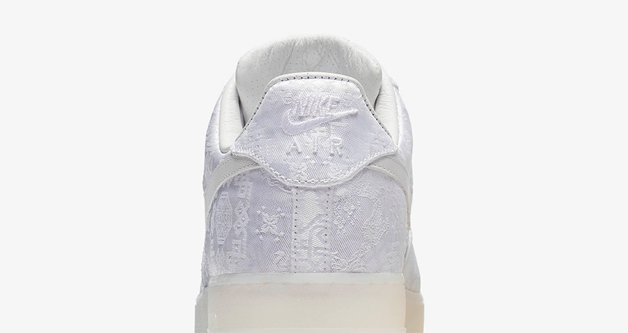 这款白丝绸配色的 CLOT x Nike Air Force 1 再度沿用了双方在 2009 年的 1WORLD 配色主题,以颇具中国韵味的白色丝绸覆盖鞋身,而这一层丝绸被撕开后,会展现出金色的特别纹理,同样是中国风情十足!无论是收藏还是上脚,这款 CLOT x AF1 都有十足的亮点,个性爆棚!