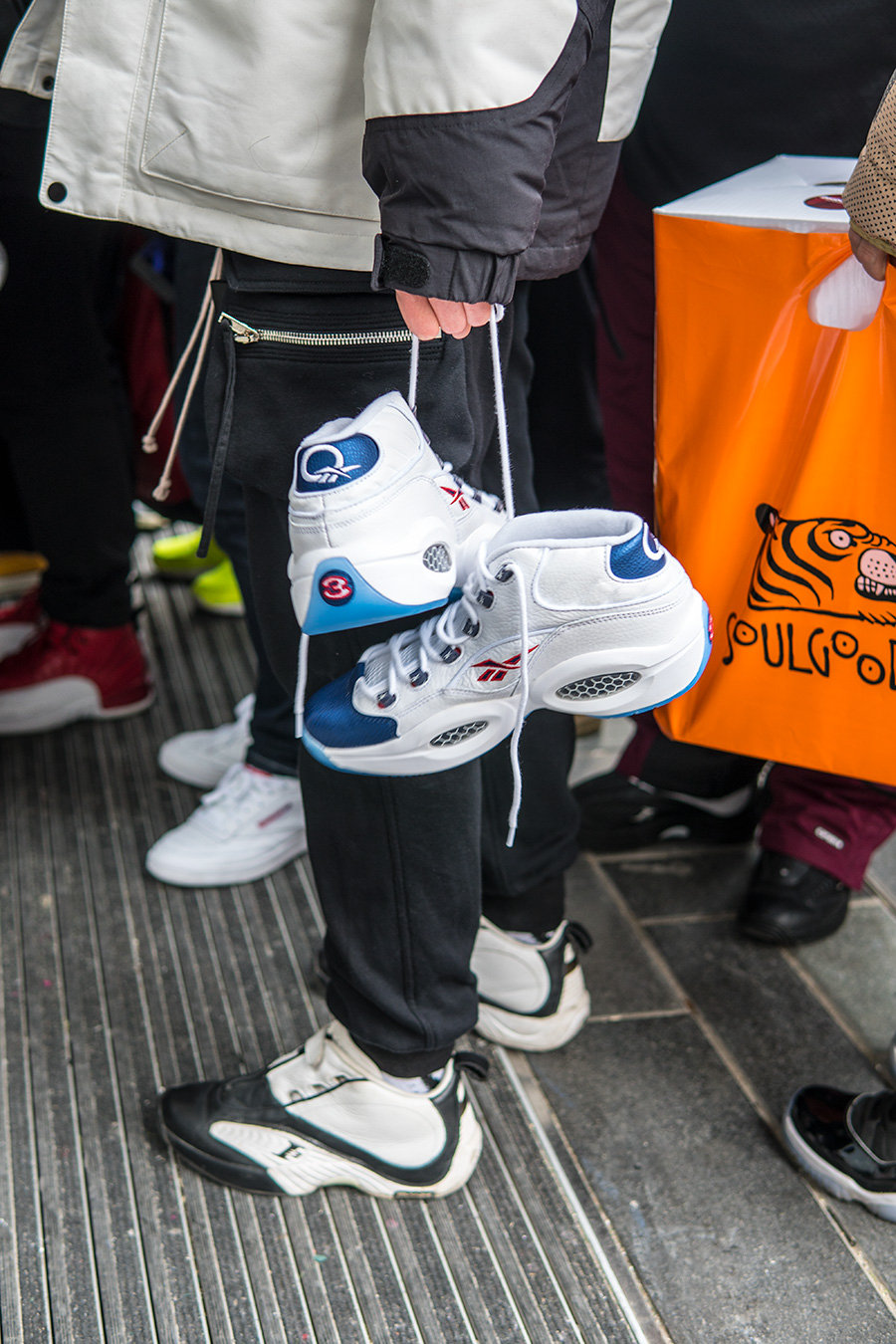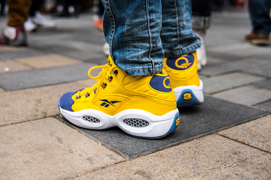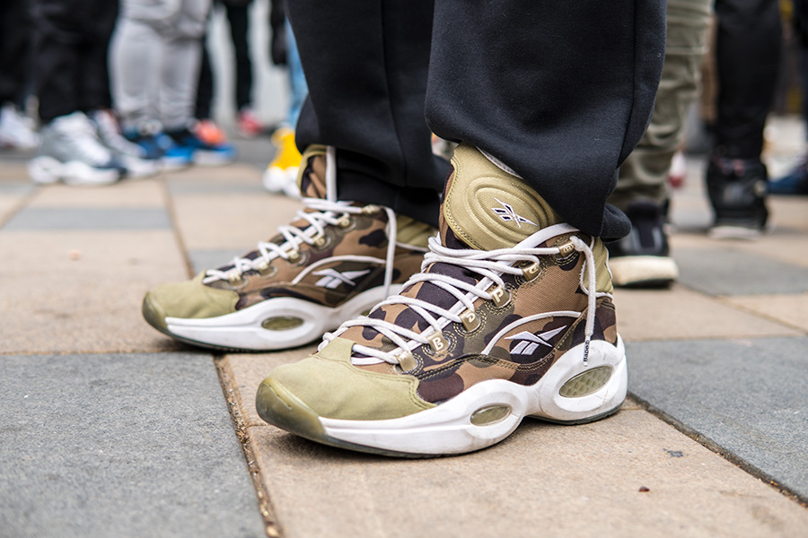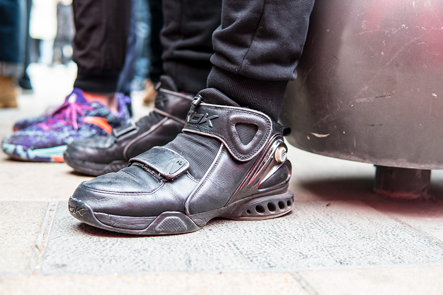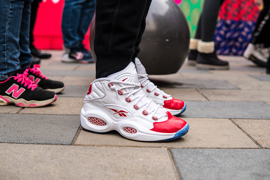 当天天气寒冷,但也抵挡不住数百位 AI 粉丝的热情,现场也聚集了大量 Reebok 球鞋,其中的艾佛森战靴则格外精彩!