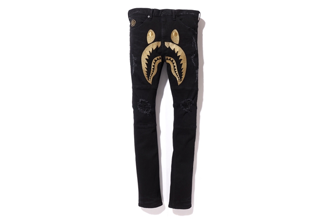 SHARK DAMAGED DENIM PANTS BAPE® BLACK