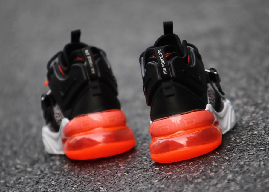 铺垫已久的大气垫家族最新成员 Nike Air Max 270 想必大家已经略有耳闻,而近日经由球鞋摄影师 @gc911 率先爆料,带来一款采用同样规格后跟超厚气垫打造,名为 Air Force 270 “Safari” 的全新鞋款! 本次以中帮造型轮廓呈现,整体配色方案选用吸睛亮眼的黑橙装扮为主基调,辅以标志性的 “Safari” 爆裂纹图案点缀细节,搭配超大面积的 270 度外露式气垫收尾。营造出强烈的未来科技感,视觉冲击力不俗! 据悉将于今年 2 月正式上架发售,定价为 $160 美元。