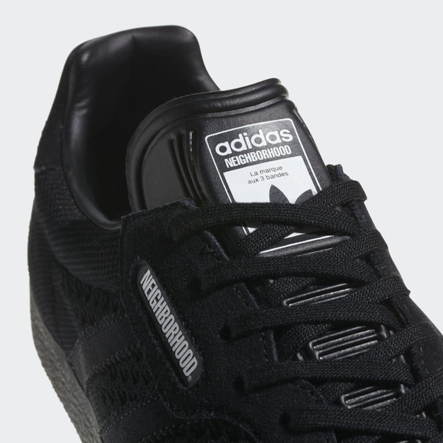 本次加入的两双鞋款分别以 Gazelle Super 及新鞋型 Chop Shop 为设计蓝本,选用品牌标志性的黑白撞色为主题打造,并分别缀有 “NEIGHBORHOOD”、“NBHD” 和 “BRGD” 字样彰显主题。散发出浓郁的暗黑韵味,吸睛指数极高!