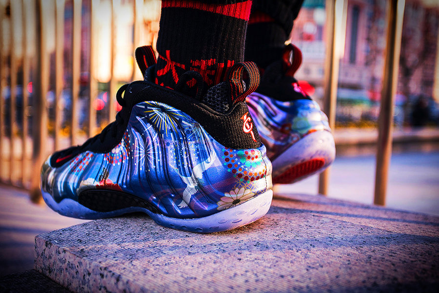 Air Foamposite One QS “LNY” 有着 “天津喷” 兄弟款之称,以中国新年为主题,鞋身细节非常丰富,加入烟花、仙鹤、祥云等中国元素!
