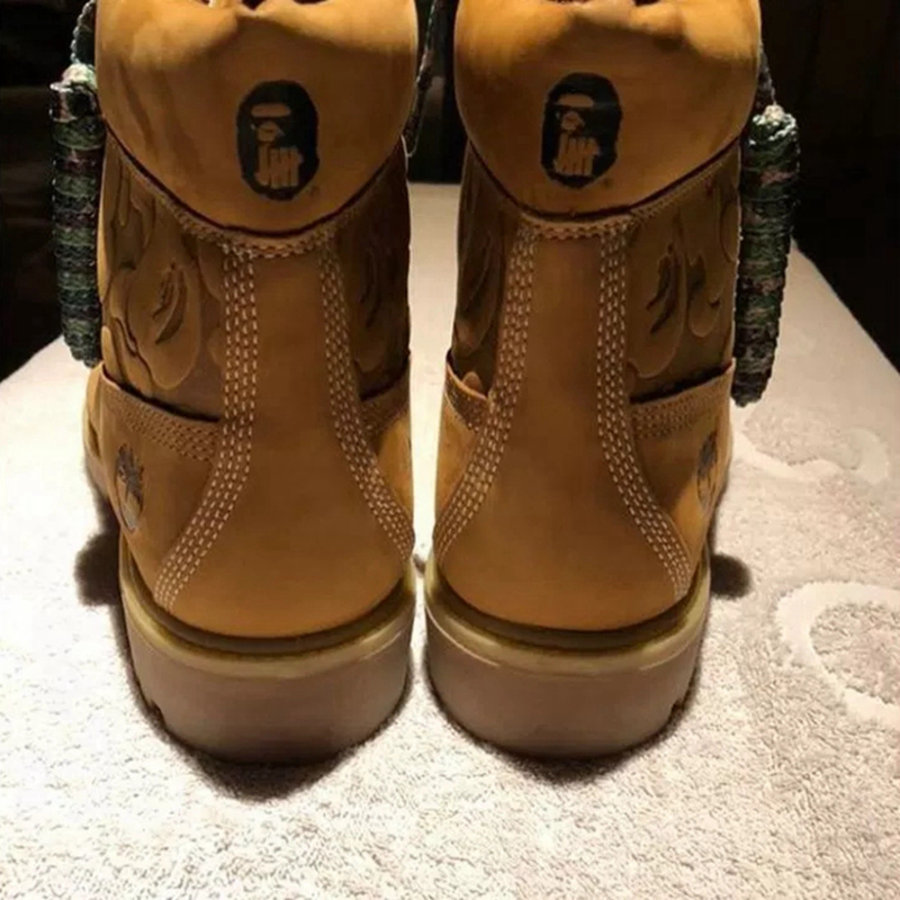 继早前曝出 Timberland 将与潮流品牌 BAPE 及 UNDEFEATED 携手合作推出三方联名鞋款的消息后,此番网络上又释出一组更为清晰的实物细节图片!