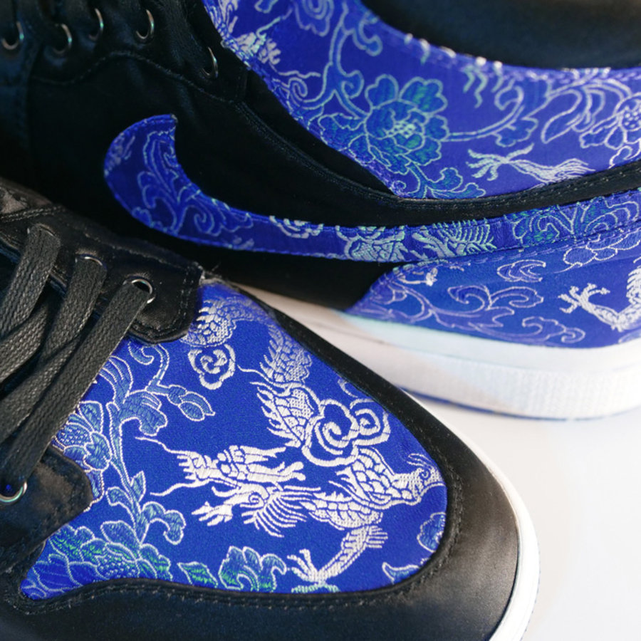 以超高人气的 Air Jordan 1 “Bred” 和 “Royal” 为蓝本,鞋面采用中国味十足的丝绸材质进行打造,并配有创意十足的 “龙纹” 刺绣,内衬则由高级绵羊皮制作而成。
