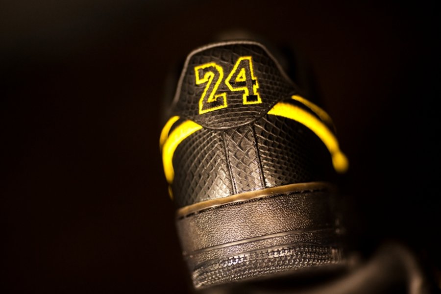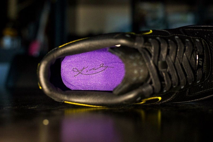意义如此重大的退役仪式,自然少不了一系列主题纪念鞋款的推出。其中关注度最高的球鞋,便是这双传闻中国区仅限量 100 双的 Nike Air Force 1 iD “Black Mamba”。