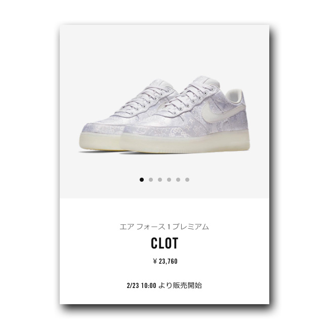 我们一月底就报道过,韩国官网预告 CLOT x Air Force 1 的发售日期为 2 月 1 日,发售价为 239,000 韩元,但后来日期变更,改成了 2 月 23 日!
