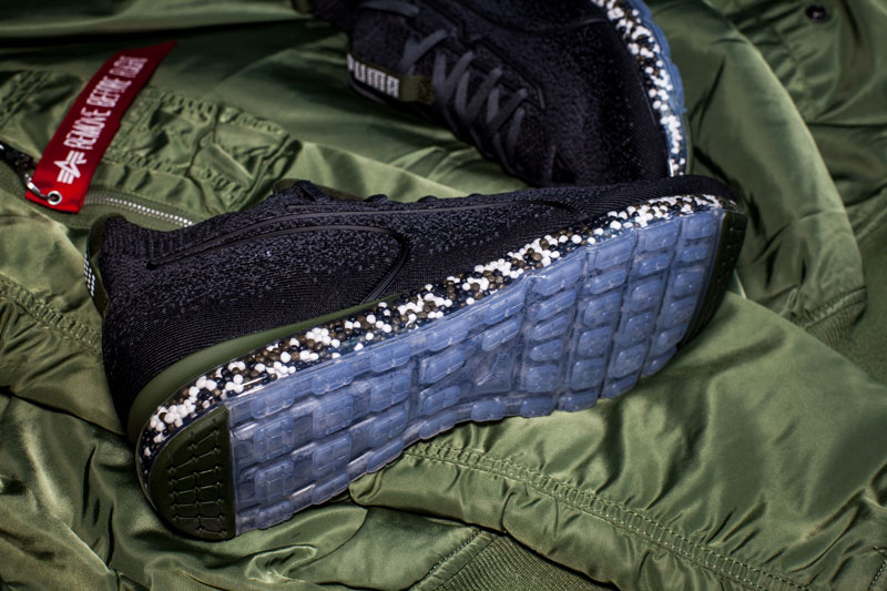 在配色上这双鞋以黑、灰两色混合打造出 evoKNIT 针织鞋面,细节中加入军绿色与白色点缀,搭载全新气垫式缓震与冰蓝色水晶外底,整体颇为低调百搭。