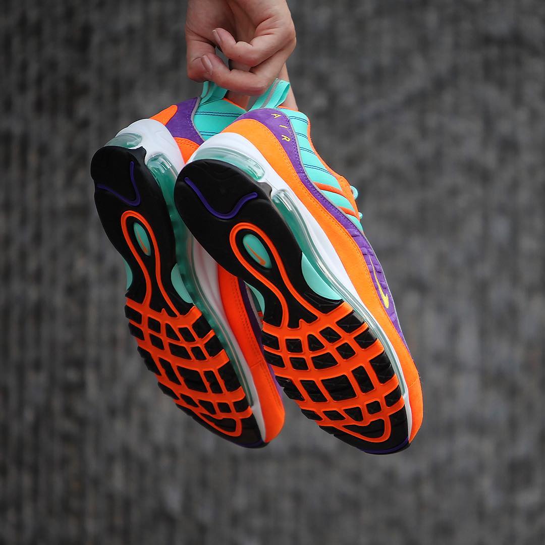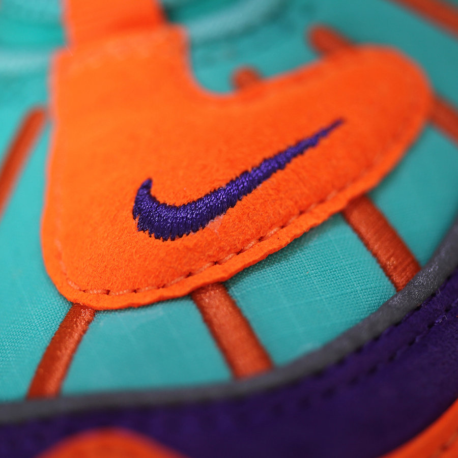 以橙、紫、湖绿三色对撞构建鞋身,大胆的色调辅以精致的细节雕琢,上脚辨识度极高,无疑是街头最炸的吸睛神器,同时还以 QS 形式发售,货量恐怕不大!