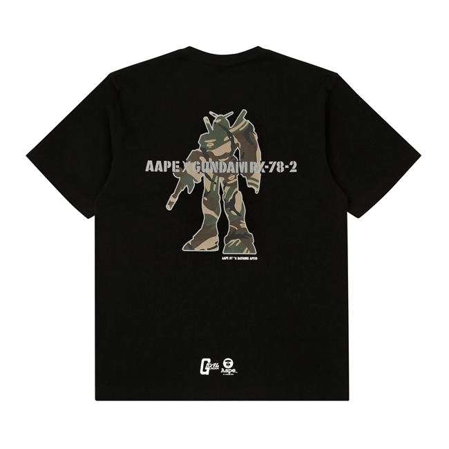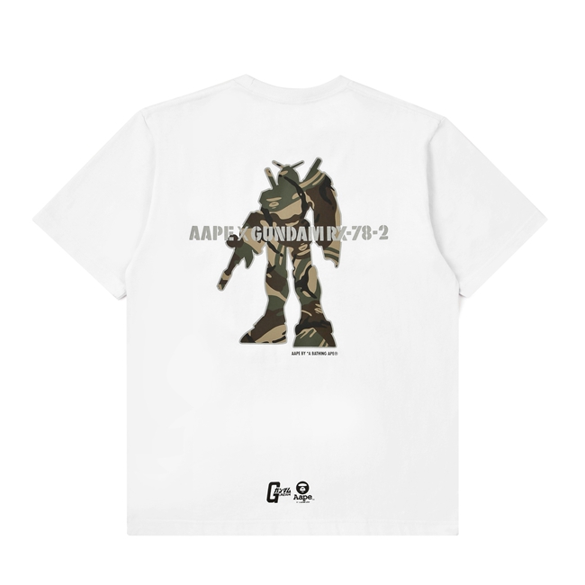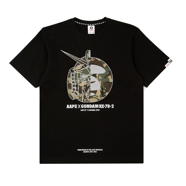 从图中可以看出,此次联名不单发布了 T恤、帽衫、配件等生活类单品,更带来了 1:100 尺寸的高达模型。模型将一贯的红白蓝黄配色改为 AAPE 经典的迷彩色,可谓是高达粉们不可错过的精彩之作!