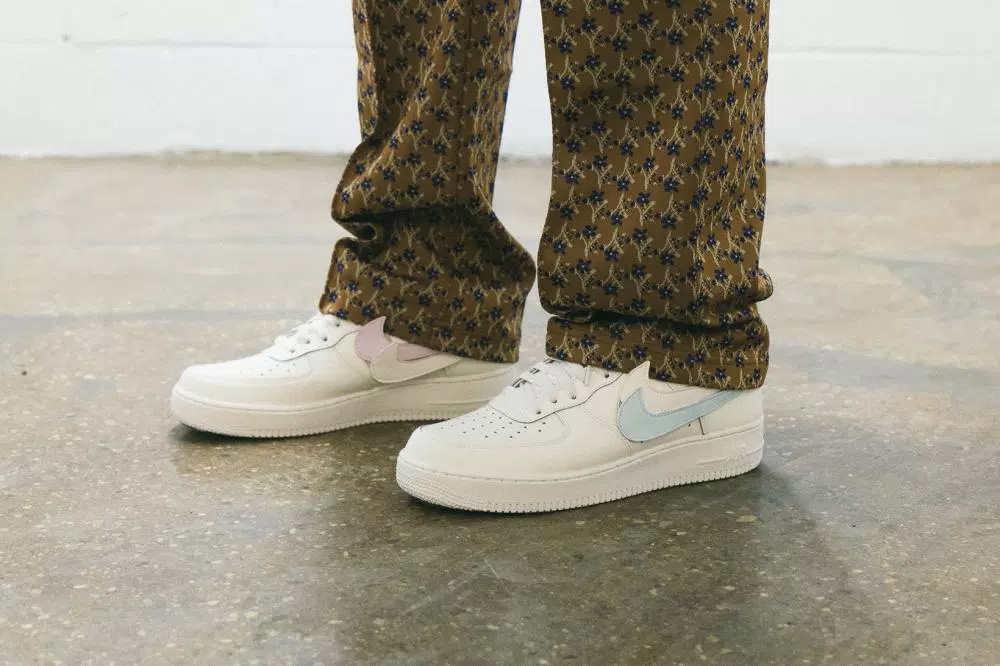 基于大家再熟悉不过的 Air Force 1 '07 鞋型打造,每双鞋的鞋身 Swoosh 都采用魔术贴设计,可以撕下和更换,鞋舌也是同样的设计,可以将标签撕下或者改换角度。