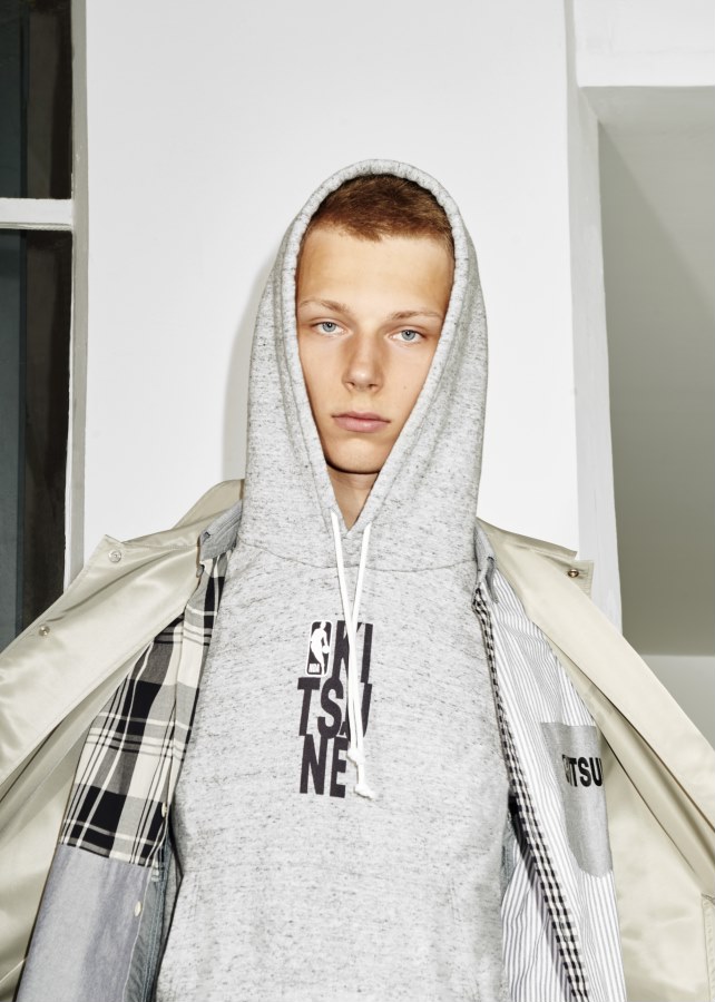之前陈冠希在社交网络上提前亲着网晒,宣告了 Maison Kitsuné x NBA 联名系列的即将到来。他上身了一款牛仔夹克,背后硕大的 NBA LOGO 表明了联名合作的身份。