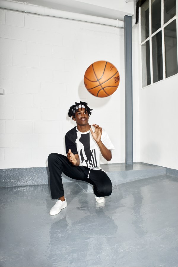 此番跨界篮球运动,将 NBA 原用的红、白、蓝经典球员标志将以黑白色现身,相反 Kitsuné 的品牌标志则改头换面,用上 NBA 的修长字体。