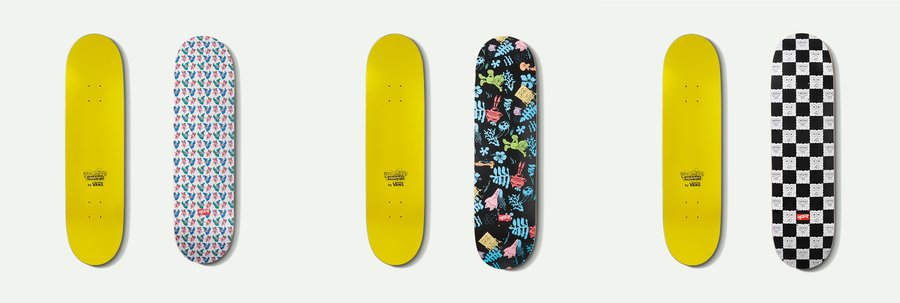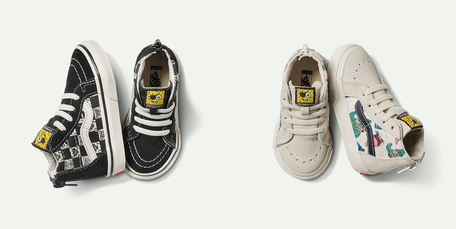 此次联名包含了 Vans 三双经典鞋款 Sk8-Hi,Authentic 和 Slip-On,在经典的黑、白、黑白棋格的基础上,加入多位动画片中的经典人物元素,海绵宝宝、派大星和章鱼哥等都有出镜,除了鞋款之外还有滑板与 T 恤等产品同步发售。