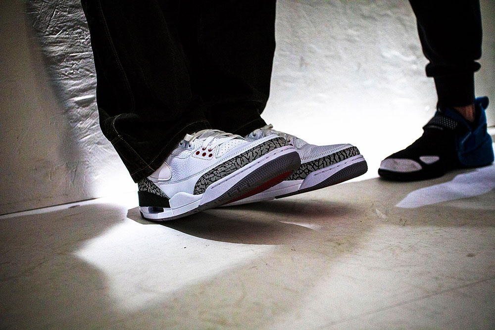 答:我在设计 AJ3 的时候和 Jordan 见了一面。在见了他之后我觉得他是一个非常强大的人,不管是从人的角度、从性格的角度还是从球员的角度。在见他之前,AJ3 的设计上有 Swoosh,在见他之后就被我拿掉了,因为我认为,Jordan 不需要 Swoosh,他很特别,即便当时 Nike 的很多人都反对。去掉 Swoosh 就像一种特殊的申明。