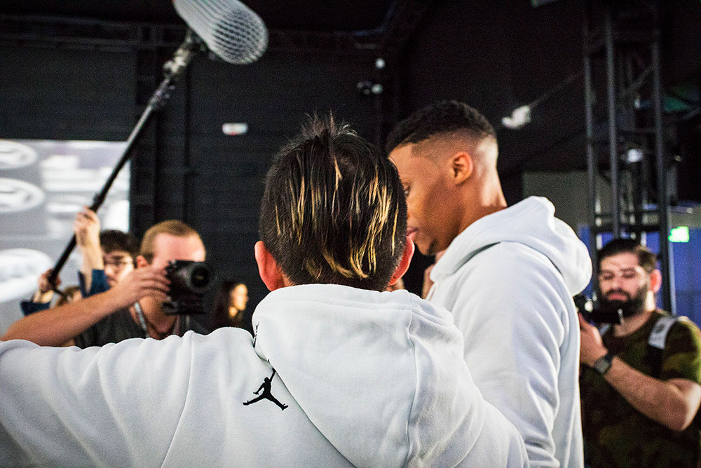 答:他们有很多相似之处,也有一些不同。威斯布鲁克非常有创意也非常时髦。关于设计,他有很多他自己的想法。他喜欢更多地参与在实际的设计过程当中。而 Jordan 和他不一样,Jordan 非常有设计的想法,但是实际的设计他会交给我来做。 威斯布鲁克喜欢选择更加现代的材料。为威斯布鲁克设计的鞋子,需要能够比较容易得进行修改,因为他我很喜欢经常变换自己的风格,因此需要让鞋子能够很容易得进行配色上的调整。