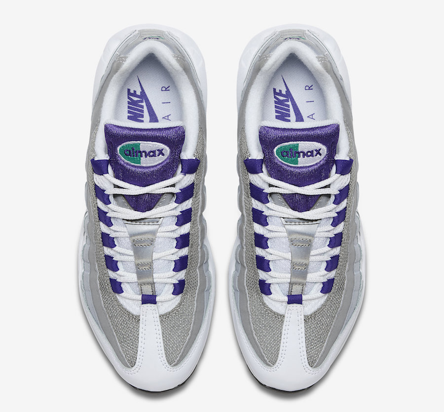 作为 1995 年元年发售时的配色之一,紫葡萄 Nike Air Max 95 OG “Grape” 在白灰条纹覆盖鞋面的基础上,鞋舌与细节采用紫色贯穿,清爽又亮眼的色彩呈现,活力十足。 将于今年 4 月正式回归,本次将以女性尺码规格登场,定价 $160 美元,感兴趣的妹子们可要多加关注啦! Nike Air Max 95 “Grape” 货号:307960-109 发售日期:2018 年 4 月 Price: $160 美元