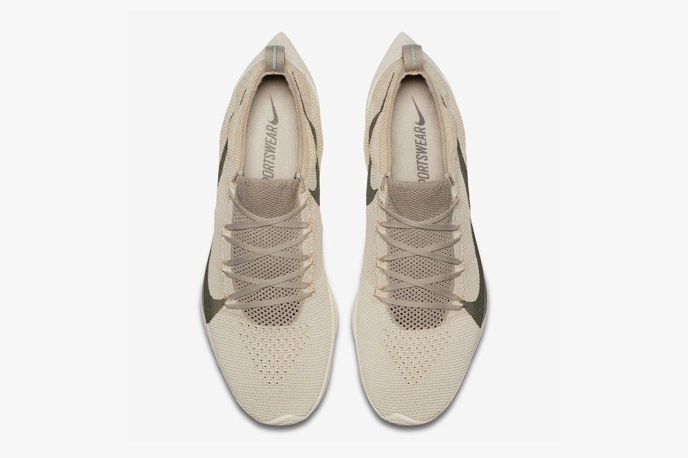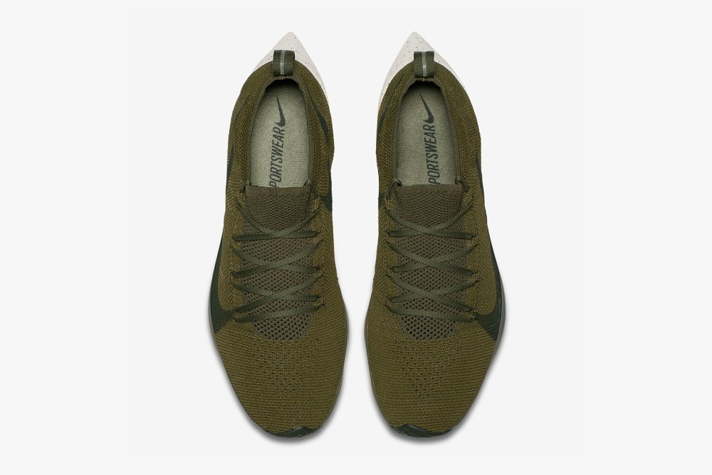 两双全新配色分别以浅卡其色和军绿色为主调,Flyknit 编织袜套鞋面搭载夸张厚度的 React 缓震中底,标志性的黑色 Swoosh LOGO 极为醒目,中底泼墨细节点缀,其中军绿配色中底还以过渡色形式呈现,休闲风格更加明显。