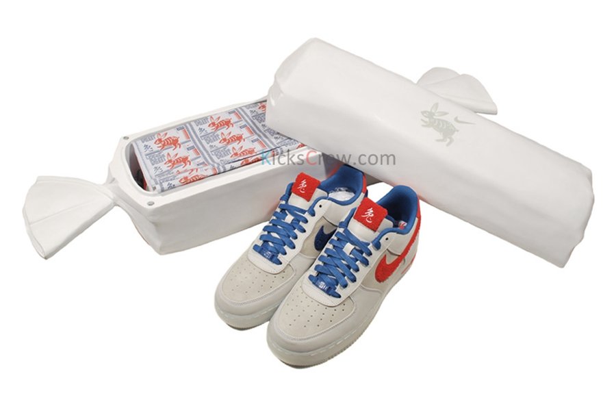 Air Force 1 生肖别注历来是春节期间的一大重头戏,时间回到 2011 年,Nike 特别打造一款白、蓝、红相间的 Air Force 1 Low “Year of the Rabbit”,并在当年 1 月 23 日首发推出限量特别版包装。