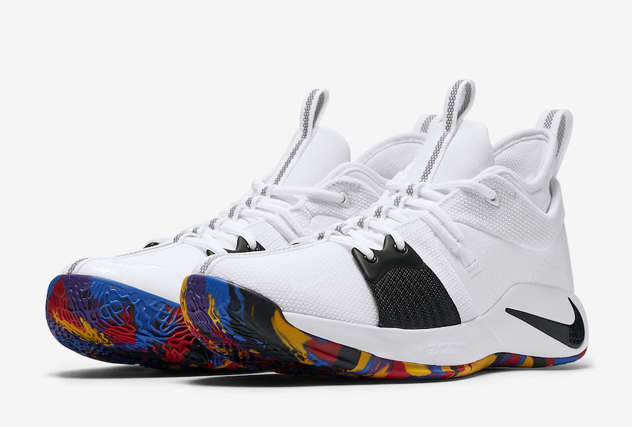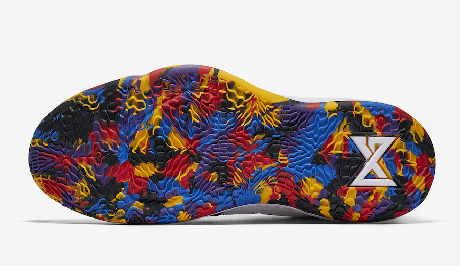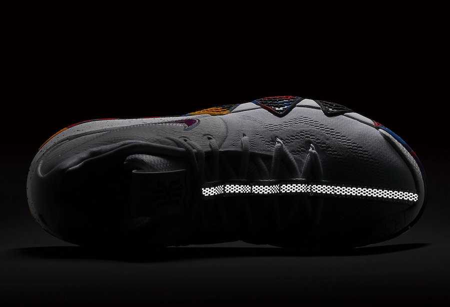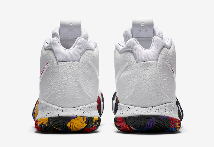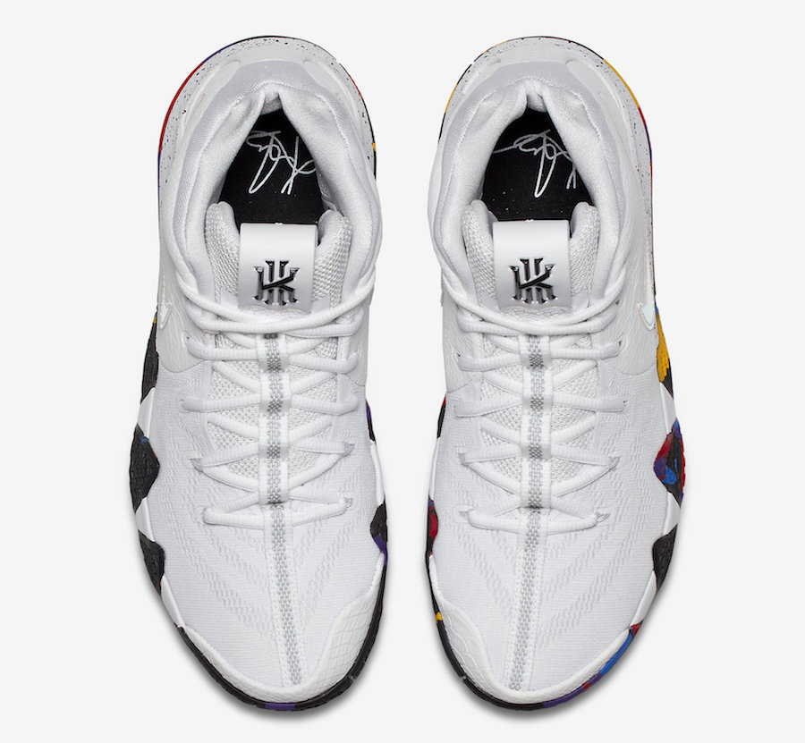 这两双鞋款,鞋面以白色为主,并配有黑色细节,炫彩斑点的外底成为一大亮点!Kyrie 4 的 Swoosh 还采用全息材质打造而成!