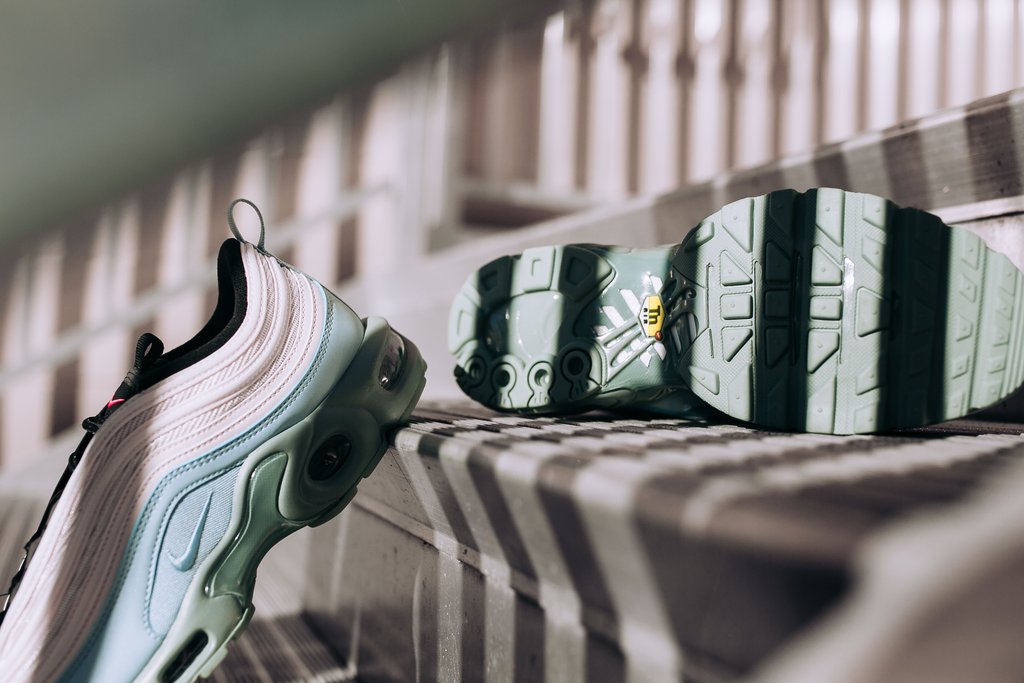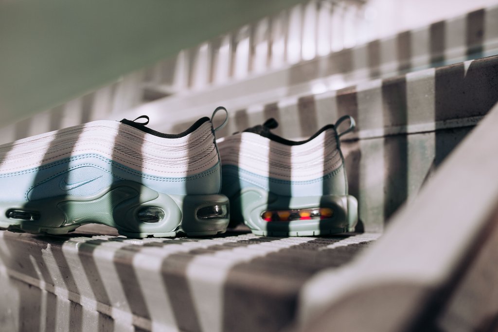 Air Max 97 和 Air Max Plus 两双人气鞋款,在今年的复古风潮中,完美的结合,打造出全新风格的 Nike Air Max 97 Plus! 鞋身采用米白色搭配湖蓝色,打造出清新的视觉感受!Air Max Plus 标志性的波浪状框架加持于身,搭配 Air Max 97 气垫大底示人,呈现出不同以往的风格,颇有一番趣味! 目前国外现已上架,国内尚未公布发售信息,我们将持续关注并带来后续报道!