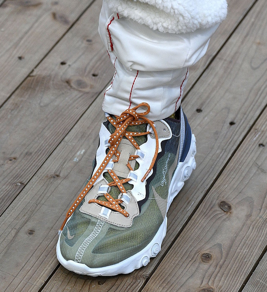 眼前的 UNDERCOVER x Nike React Element 87 以老爹鞋的造型现身,同样是全掌的 Nike React 缓震。鞋底的耐磨橡胶设计还延伸到了中底上,也带来更为丰富的视觉表现力。