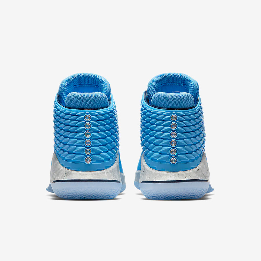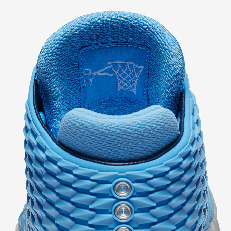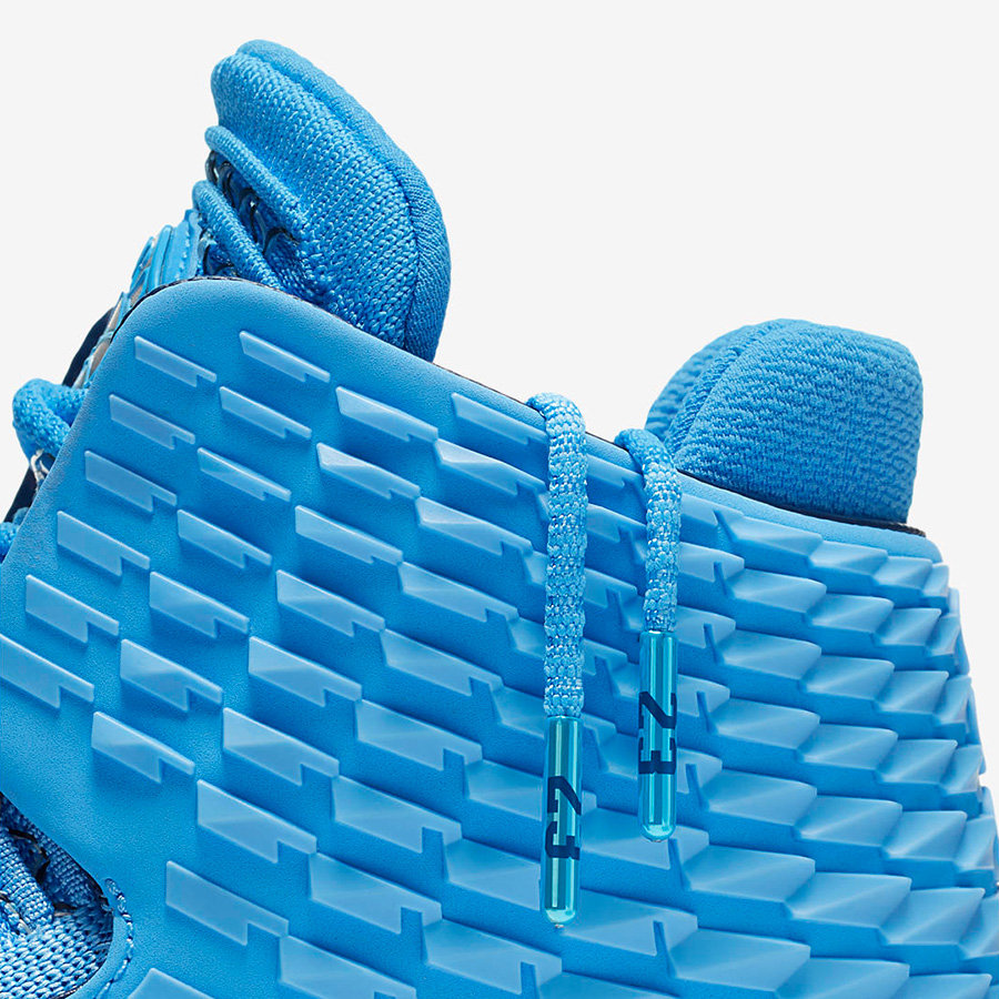 本次配色方案选用一抹清爽的的北卡蓝色装扮贯穿鞋身,鞋帮辅以独特纹理结合富有含义的数字号码呈现,搭配浅灰色大理石纹理中底结合水晶大底收尾,颜值与质感表现均为不俗!