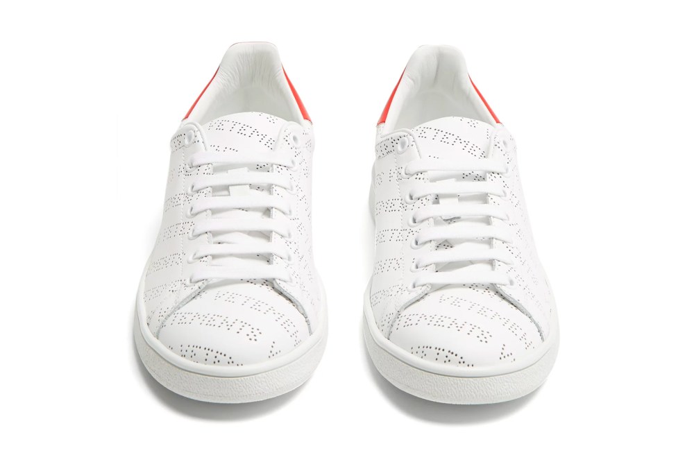 而这已经不是 Vetements 第一次借鉴经典,此前的 Chamipion 与 DHL 的 Logo 都给人留下深刻印象。三款配色都以白色为主调,后跟则以绿色、红色和蓝色加以点缀,采用优质皮革制作打造鞋面,而镂空的 “VETEMENTS” 设计是整双鞋最大的亮眼。