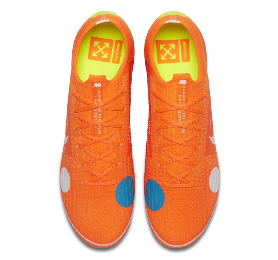 今年年初就曾曝料过 OFF-WHITE 将与 Nike 联名推出足球产品,如今实物 OFF-WHITE x Nike Mercurial Vapor 12 Elite 终于正式发布。