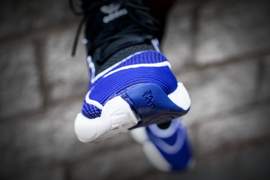 鞋面采用 Primeknit 编织与尼龙网眼物料打造而成,不仅在需要的部位带来透气、包裹、支撑的针对性设计,黑、蓝相间的丰富纹理营造,使其更具视觉辨识度,让人过目不忘!