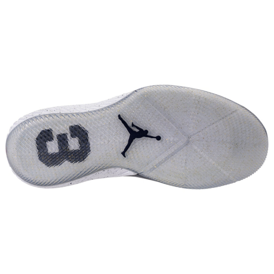 透过水晶底可以看到鞋跟分别印有 3 和 4 两个数字,分别为 Khelcey Barrs 三世和威少高中球衣号,以纪念两人队友之情。