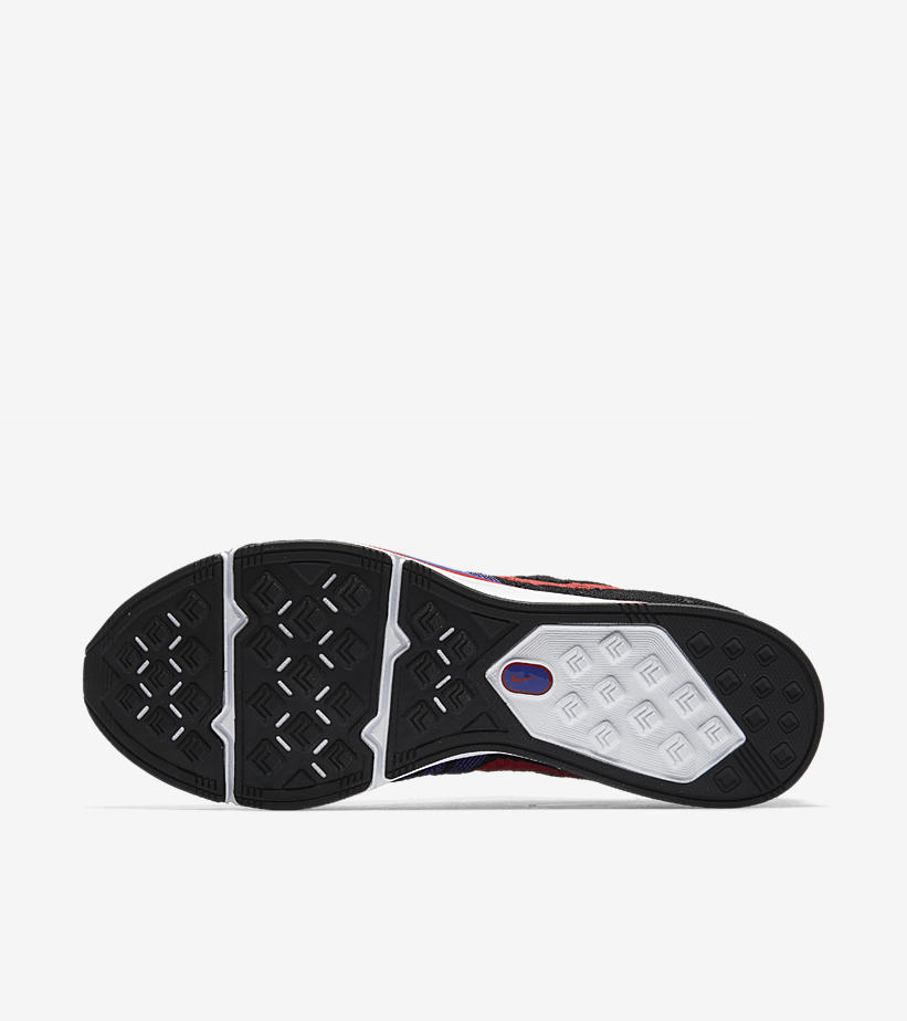 鞋款以黑、蓝、红三色为主调,在 Flyknit 鞋面上以撞色的形式提升辨识度,色调搭配也有几分复古气质,也算是颇有特点的全新配色。