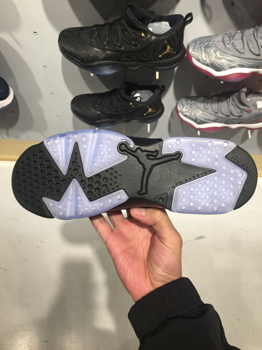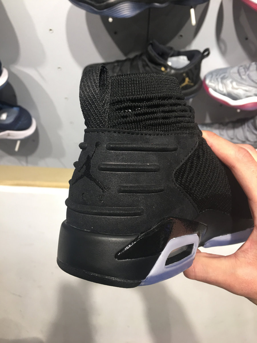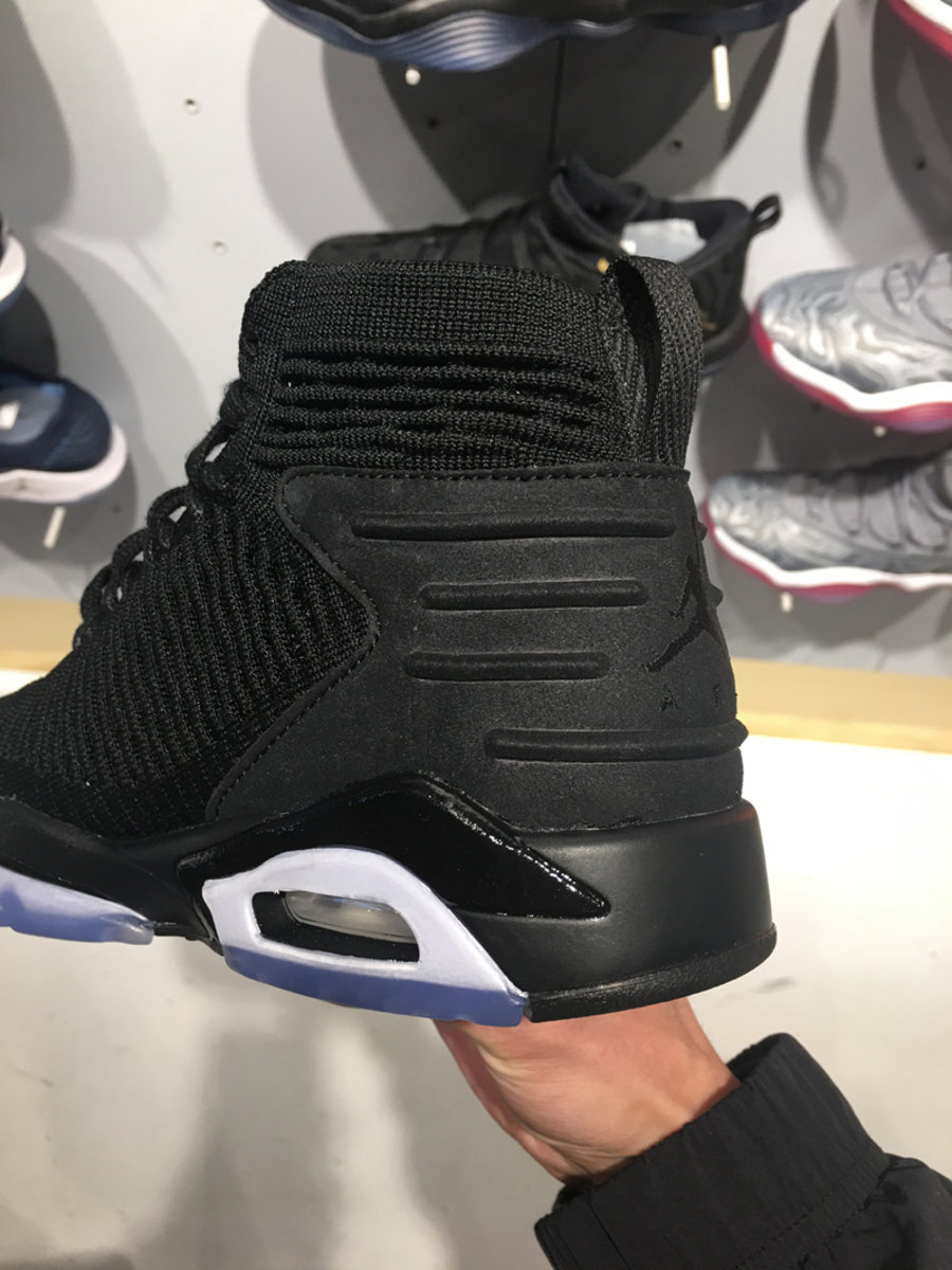 全新版本以纯黑色为主调,在 Air Jordan 6 经典外形的基础上改为高帮袜套式设计,黑色的 Flyknit 编织鞋面加入银线点缀,后跟改为黑色麂皮材质,搭载水晶外底,整体重量大大减轻,想必脚感也会所有提升!