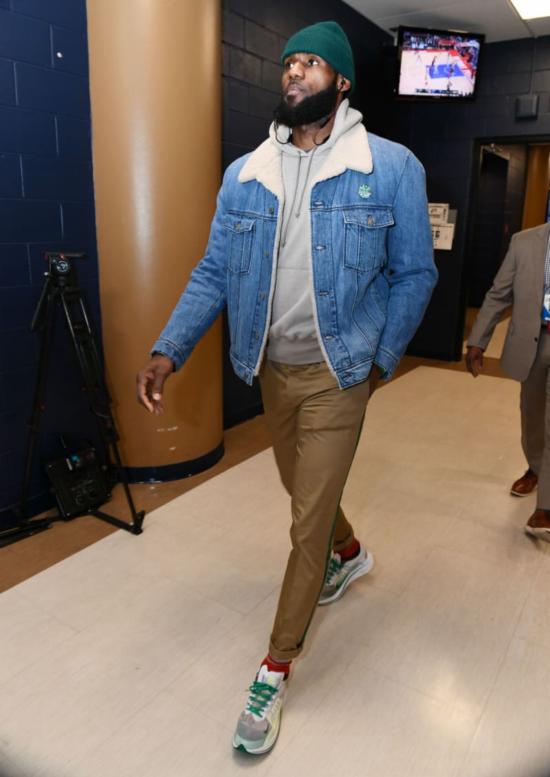 詹姆斯和威少都被拍到穿着了牛仔外套,让人没有想到的是,威少居然穿了这双鞋!