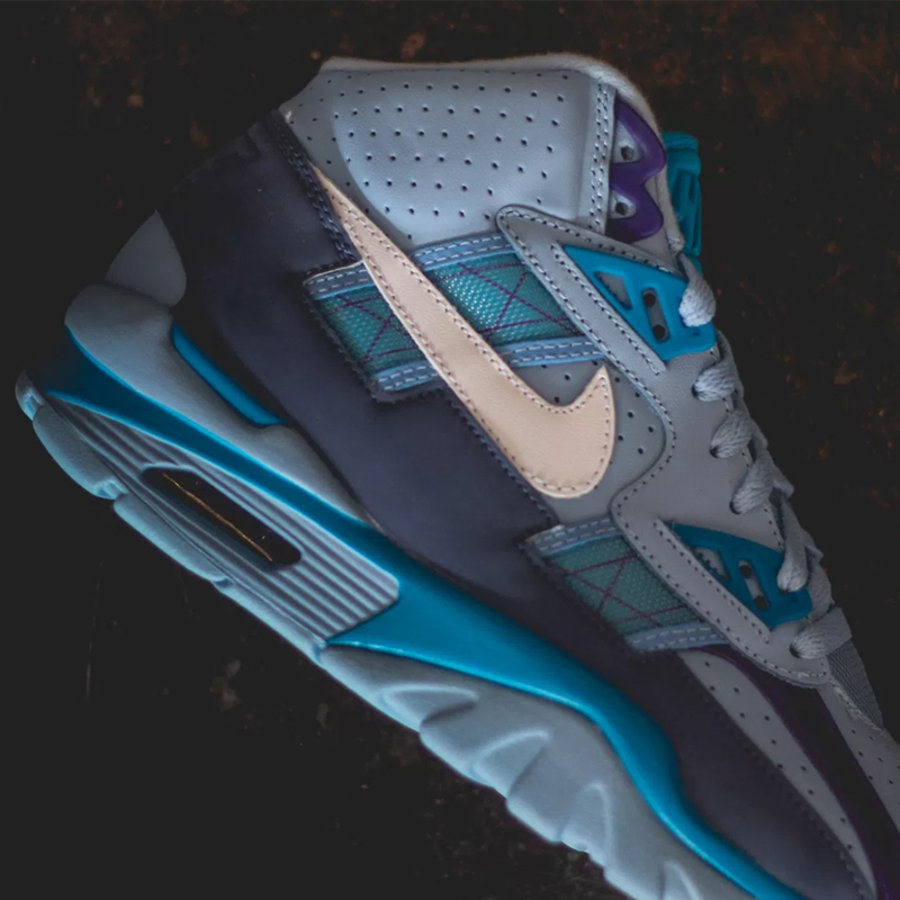 这款 Nike Air Trainer SC High 蓝紫配色使用了多种深浅的蓝色搭配紫色的配色方案,配以醒目的白色 Swoosh Logo,色彩丰富但主题鲜明统一,毫无杂乱之感。硬朗的造型配以复古的配色,一定会成为街头潮人的心头好。