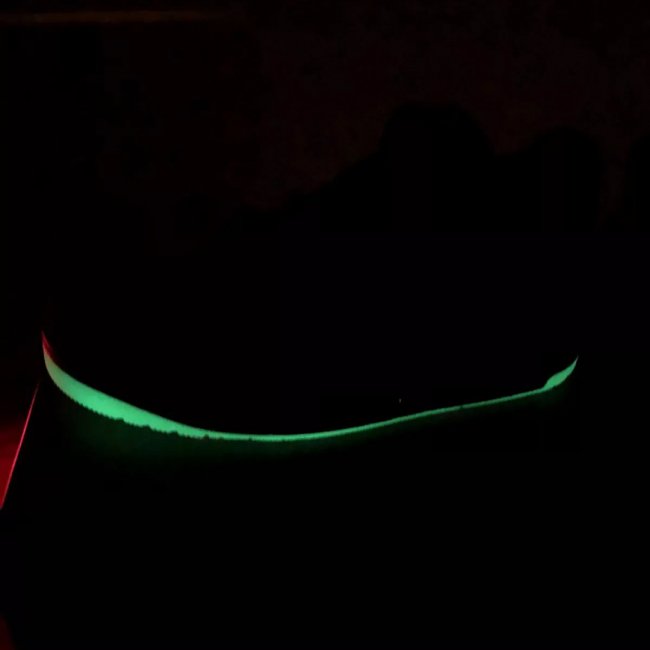 整体采用纯黑的配色方案打造而成,鞋面部分包括爆裂纹在内全部使用 Flyknit 编织材质打造,搭配淡绿色水晶外底收尾,并且带有夜光功能!