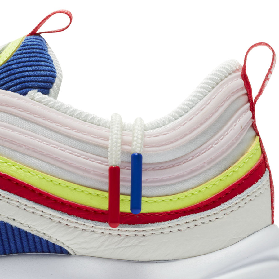 近期不停推出新款的 Air Max 97 又爆出红黄蓝配色。让人不禁感叹:Air Max 97 到底有多少配色? 这款全新 Air Max 97 鞋面以白色皮革搭配蓝色网布,其间以红黄两色线条点缀,同时保留了反光线条,白色中底和外底包裹红色 Max 气垫。在使用丰富色彩的同时不显杂乱,易于穿搭。 此款配色暂无发售信息,有兴趣的朋友还请保持关注。 Pic via:US11