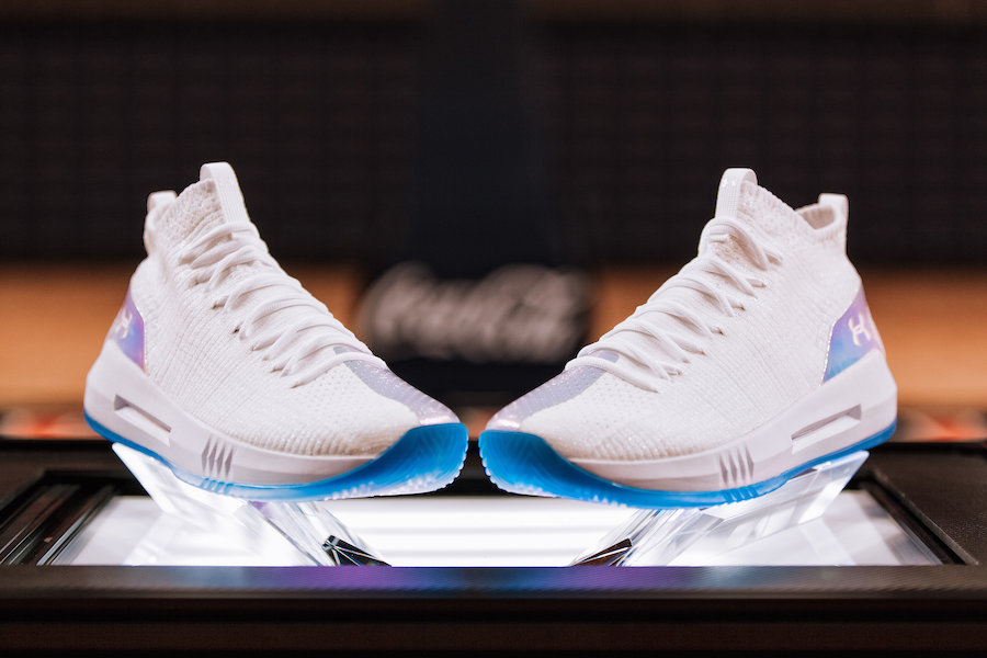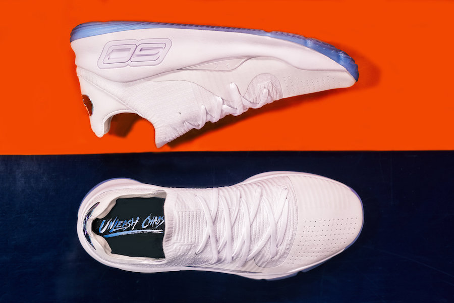 随着今年 NCAA 联赛 “疯狂三月” 开打,Under Armour 为赞助的几支球队推出了 “Unleash Chaos” 专属套装。 套装包含了一双 Curry 4 Low 和一双搭载 HOVR 缓震技术的全新篮球鞋,配色以白色为主调,整体加入全息色彩细节,套装以非常精致的巨大礼盒包装,视觉感受极为震撼。 此次套装目前没有具体发售信息,按照惯例应该是没有市售计划。