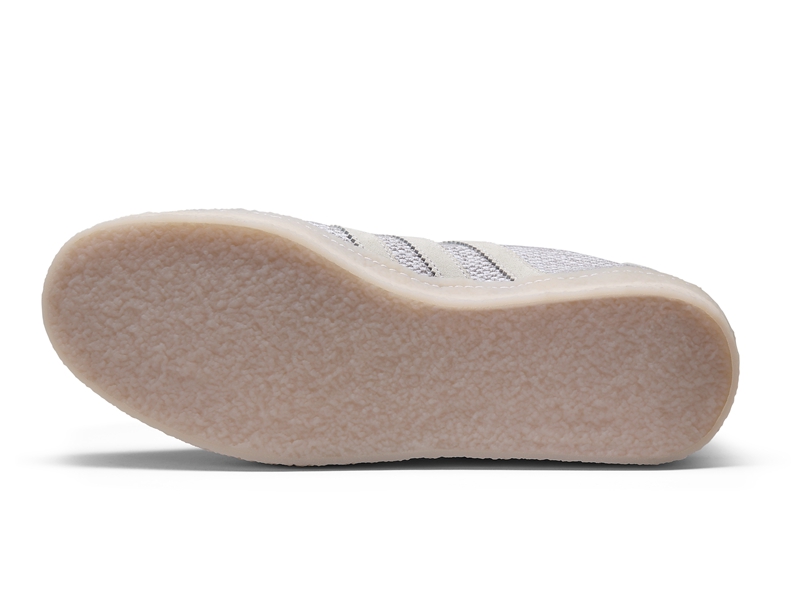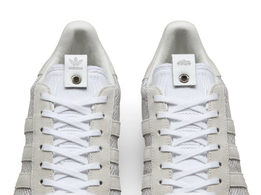 从图中可以看出,这双全新的 Gazalle 在鞋面处采用编织鞋面呈现,使整体更具贴合性与柔软质感。除此之外,鞋头、3 条纹、以及后跟处也加以精致点缀。使这双 JUICE x adidas Consortium Gazalle 拥有精致的简约之美。