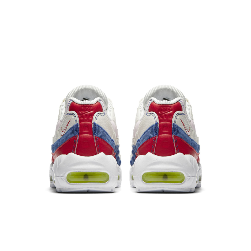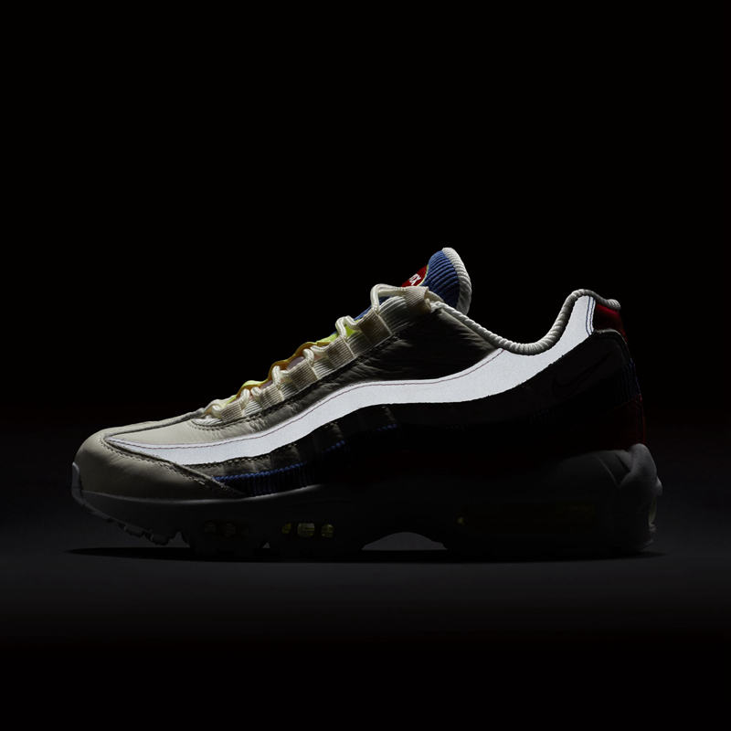 与 Air Max 97 相同,这两款鞋配色方案也是以米白色搭配红黄蓝三原色,Air Max 95 带有 3M 反光材质。从图中可以看出该系列鞋面蓝色部分材质均为灯芯绒,同时鞋垫均为一红一蓝的鸳鸯设计。此系列鞋款配色清新而独特,适合春夏穿着,三款球鞋各具特色,为粉丝提供更多选择。