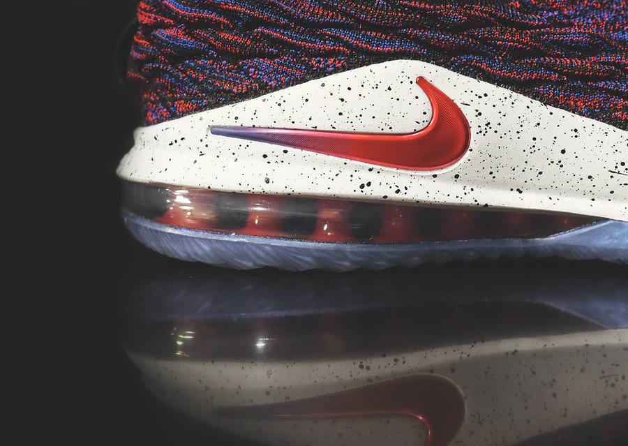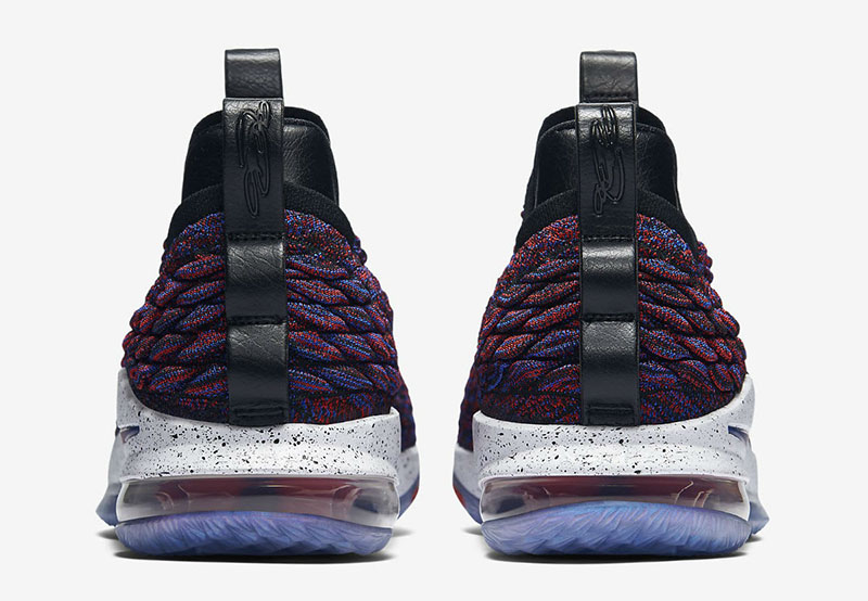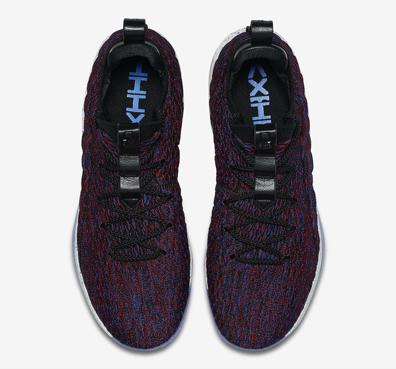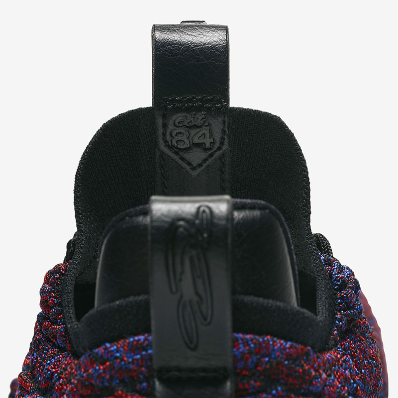 保留高帮版 Battleknit 的独特纹理和袜套式领口,采用红蓝双色编织彰显全明星的传统配色气氛!曾经后跟硕大稳定片和 Swoosh,本次改以侧方金属色呈现,依旧醒目又质感不俗。中底配置发生变化,后掌为 Air Max ,前掌外底内侧写有 “zoom” 字样,相比高帮版本的中底配置,本次 LeBron 15 Low 在稳定性和反馈上会更佳平衡。